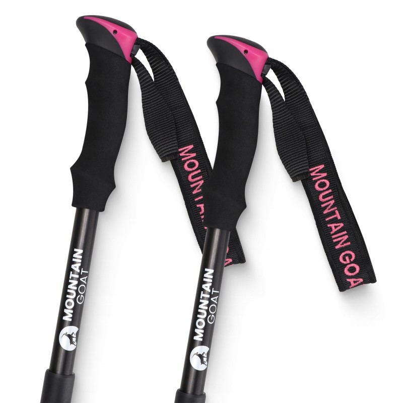 Трекінгові палиці від Mountain Goat виконані з високоякісного сплаву алюмінію 7075, а вага комплекту складає всього 0.54 кг. Палиці мають 3-секційну конструкцію на основі просунутої Z-системи складання, в розібраному вигляді їх довжина всього 43 см. Для зручності використання на палицях нанесена шкала, завдяки чому користувач з легкістю зможе встановити потрібну висоту в діапазоні від 110 до 130 см та зафіксувати положення надійними замками Safe Lock. Рукоятки мають ергономічну форму та виконані з приємної на дотик піни EVA. Матеріал гасить удари, запобігає натиранню шкіри й дозволяє їй вільно дихати. Форма рукояті адаптується до руки, що забезпечує надійний та міцний хват.