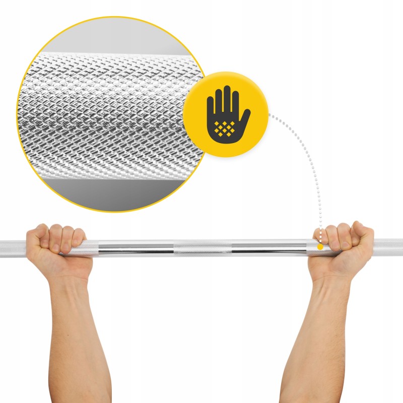 Прямий гриф від 4Fizjo виконаний з високоякісної хромованої сталі, що робить всю конструкцію довговічною та надійною. Таким чином він витримує високі навантаження без ризику деформації. Зона хвату має спеціальну насічку, що гарантує відмінну фіксацію грифа навіть у вологих руках. Стабільність і безпека є пріоритетом під час силових тренувань, тому гриф без підшипників відмінно підійде для статичних вправ, класичного бодібілдингу та пауерліфтингу. Прості та ефективні пружинні замки впевнено утримують обтяження, а процес зміни ваги з їх допомогою максимально швидкий. В асортименті у виробника доступні грифи різної форми та довжини для будь-яких тренувальних цілей.
