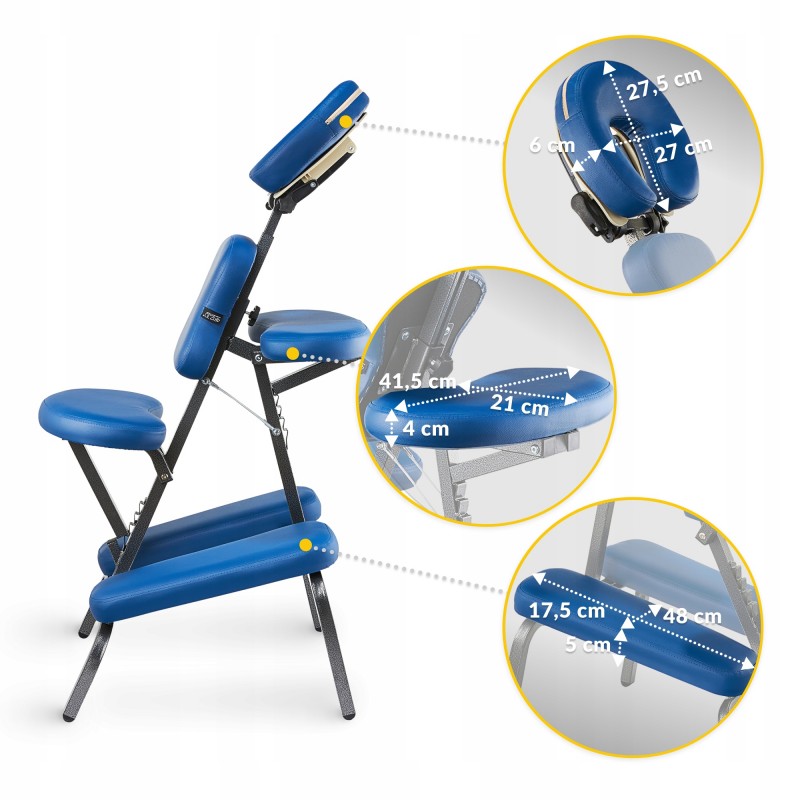 Складний масажний стілець від польського бренду 4Fizjo - це ідеальне рішення для людей, які займаються професійною діяльністю: масажистів, фізіотерапевтів, косметологів, тату майстрів та інших спеціалістів, яким потрібне обладнання для роботи в обмеженому просторі. Стілець компактно складається, тож його легко зберігати та переміщати. Також він забезпечує мобільність, адже його можна без жодних труднощів розмістити в багажнику авто та надавати свої послуги з виїздом до клієнта.