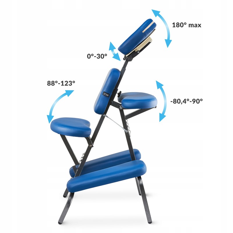 Масажний стілець від 4Fizjo сконструйований так, що всі елементи фіксуються при складанні та поміщаються всередину транспортної сумки, що йде в комплекті. Виріб вирізняється сучасним дизайном та стриманими кольорами. Для виробництва крісла використовуються високоякісні матеріали: рама виконана зі сталі, а сидіння, підголівник, спинка, що підтримує грудну клітку, а також підлокітники та підніжки, покриті приємною на дотик еко-шкірою наповненою м’яким поролоном. Оббивку легко чистити від слідів води та масел, це гарантує комфорт використання та гігієнічність. Наше спеціалізоване крісло оснащене різноманітними системами регулювання: сидіння (5 рівнів, 88°-123°), підлокітника (4 рівні, -80.4°-90°), підголівника (до 180°) і нахилу нижньої частини підголівника (0°-30°). Такі рішення дозволяють плавно підлаштувати обладнання під зріст сидячої людини.