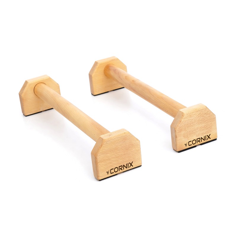 Дерев'яні паралетси від польського бренду Cornix - це спортивний інвентар, який використовується для гімнастики, воркауту, а також класичних віджимань. Вони дозволяють активувати велику кількість м'язів та збільшити діапазон рухів, що матиме позитивний вплив на ефективність тренування. Паралетси набирають все більшої популярності як серед професійних спортсменів, так і любителів. Воно й не дивно, адже тепер кожен зможе освоювати вдома нові гімнастичні елементи, такі як: L-sit, V-sit, повний планш та багато інших.