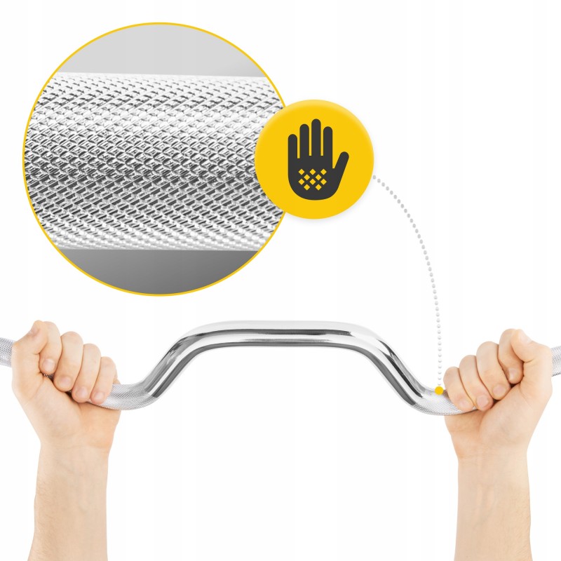 Z-подібний гриф від 4Fizjo виконаний з високоякісної хромованої сталі, що робить всю конструкцію довговічною та надійною. Таким чином він витримує високі навантаження без ризику деформації. Зона хвату має спеціальну насічку, що гарантує відмінну фіксацію грифа навіть у вологих руках. Стабільність і безпека є пріоритетом під час силових тренувань, тому наш гриф обладнаний різьбовими замками. Вони не зісковзують та не розгойдуються навіть під час інтенсивних тренувань. Потрібний ефект досягається завдяки гумовим ущільнювачам на кожному замку. В асортименті у виробника доступні грифи різної форми та довжини для будь-яких тренувальних цілей.
