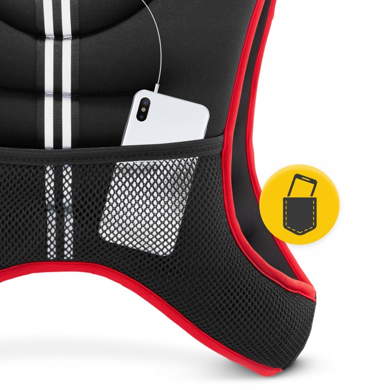 Жилет-обважнювач від 4Fizjo виготовлений з якісних та міцних матеріалів. Зовнішня тканина - це неопрен, що є приємним на дотик та забезпечує комфорт під час бігу й силових тренувань. Наповнювач - залізний пісок (iron sand), гарантує відмінний розподіл ваги та хорошу стабілізацію. Тренувальний жилет чудово облягає тіло та надійно фіксується завдяки подвійній системі кріплення і регульованим лямкам. Це також дає змогу підігнати окружність виробу під обхват грудей для максимальної свободи рухів. Додатково продукт оснащений сітчастою кишенею в яку можна покласти телефон чи гаманець під час забігу, а також світловідбиваючими елементами для кращої видимості в темну пору доби.