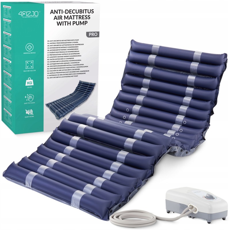 Протипролежневий матрац PRO з компресором від польського бренду 4Fizjo рекомендується до використання людям, які більшу частину часу проводять лежачи. Пам'ятайте, що пролежні можуть з'явитися дуже швидко - навіть протягом декількох днів. Вони не тільки болючі, але й надзвичайно важко піддаються лікуванню. Обмежена рухливість виникає з різних причин, найчастіше в такому стані перебувають люди з інвалідністю та похилого віку, а також пацієнти госпіталізовані на тривале лікування після травм та операцій. Тому, щоб уникнути неприємних наслідків від появи пролежнів, набагато легше їх попередити, ніж лікувати.