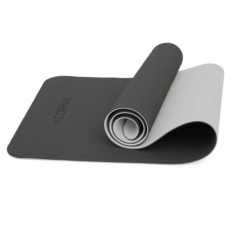 Килимок для йоги та фітнесу Cornix TPE 1830x610x6 мм, чорний-сірий, код: XR-0349