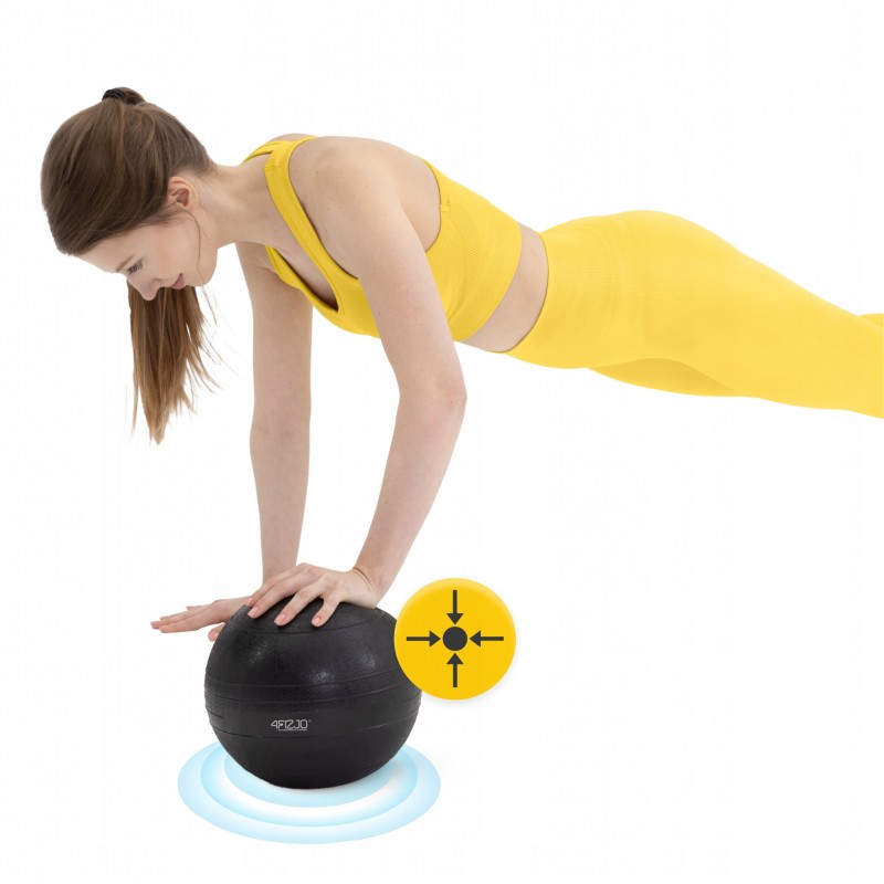 Слембол від польського бренду 4Fizjo - це всім добре відомий медичний м'яч, але в абсолютно новій версії. Він відкриває багато можливостей для тренувань, з його допомогою можна провести цікаву розминку, урізноманітнити звичні вправи або побудувати навколо нього самостійний тренувальний блок. Ви можете займатися на медичному м'ячі Slam Ball сидячи, лежачи або спираючись на нього ногами чи руками. Ви також можете використовувати його, як обтяження для виконання присідань, випадів, вправ для м'язів преса, поворотів тулуба та підйому м’яча в положенні стоячи чи лежачи.