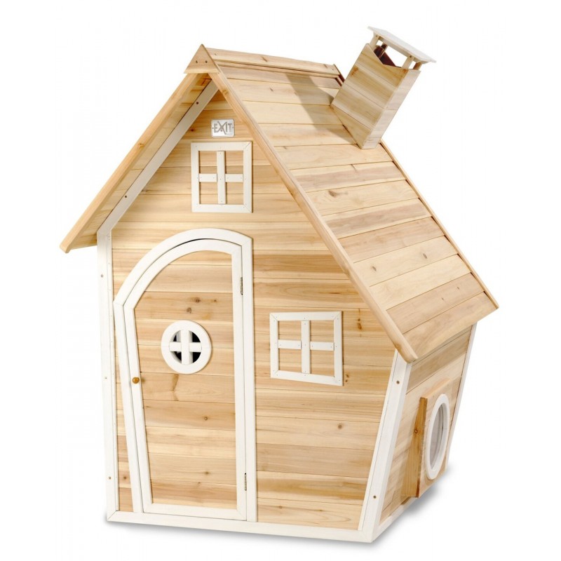 Створіть затишний простір для дитячих ігор з дерев'яним будиночком Exit Fantasia 100! Натуральний дизайн і продумані деталі, такі як димар, похилі перила та грайливі форми рам, роблять його справжньою мрією для малюків. Компактний і стійкий, він ідеально підходить навіть для невеликої ділянки.