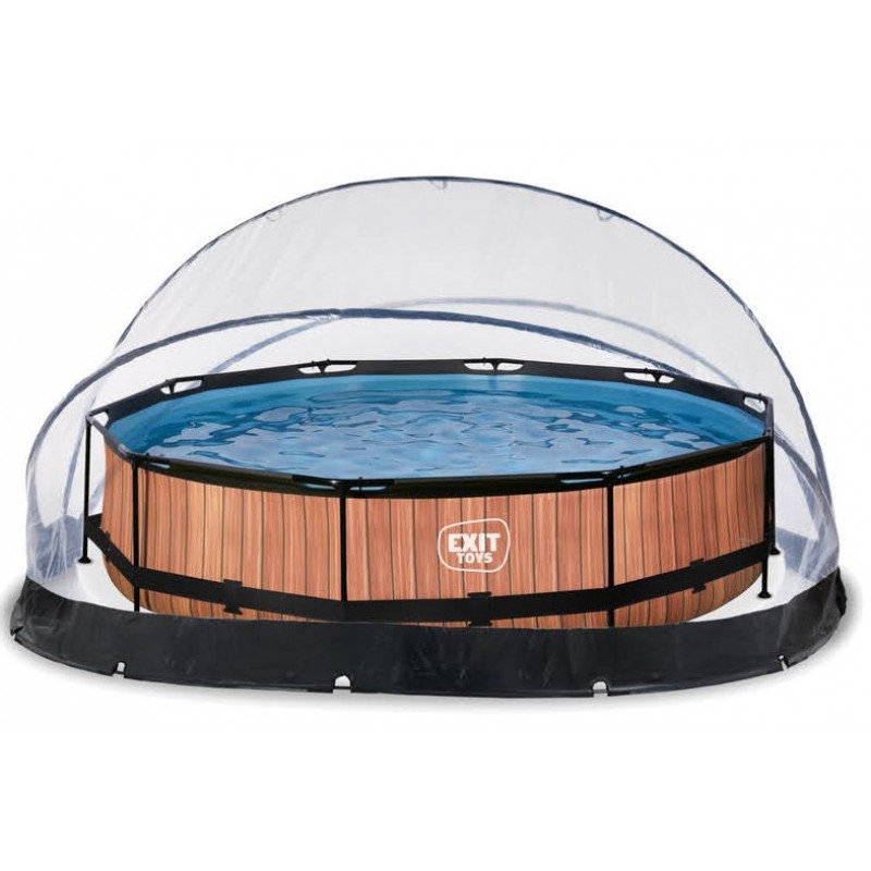 Каркасний басейн Exit 360x76 см з накриттям "Дерево" - це лаконічне і елегантне рішення для вашого саду, дачі або двору. Зовнішня обробка виконана з тканини з ефектом дерев'яної стіни, що надасть вашій ділянці естетичному і стильному вигляду.
