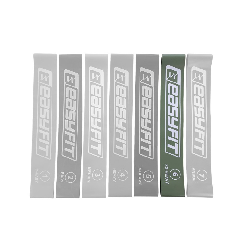 Фітнес-кільце EasyFit №6 - це резинка з рівнем навантаження XX-Heаvy, яка має підвищений опір та підійде для складного рівня навантаження. Основна перевага фітнес резинок для спорту полягає в тому, що вони створюють напругу по всій амплітуді руху та можуть бути використані у тренуваннях різних частин тіла. Гумові петлі EasyFit виконані у вигляді замкнутої смуги із міцного латексу, що обмежує рухи, роблячи їх складнішими. Під час тренувань із фітнес-кільцями акцент робиться не на швидкість, а на правильну техніку виконання. Навіть прості вправи, такі як присідання, випади та махи ногами, з використанням кільцевих гумових петель ефективно проробляють м'язи сідниць, тазу та стегон.
