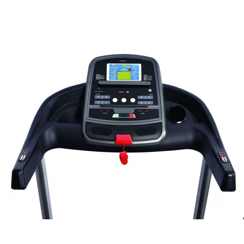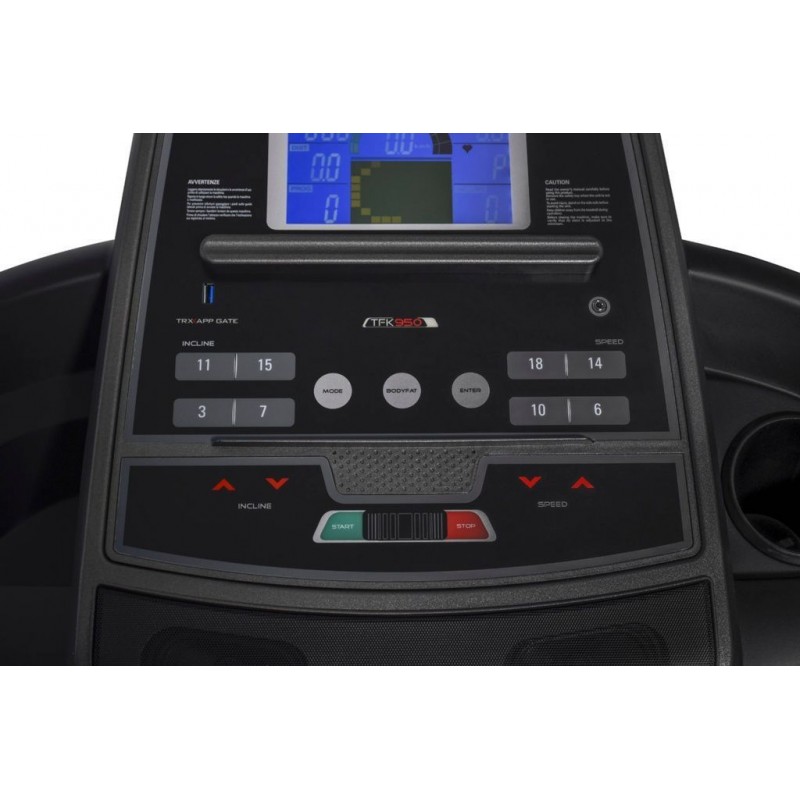 Інтуїтивне керування: LСD-дисплей (158 x 97 мм) з підсвічуванням, що відображає швидкість, нахил, пульс, дистанцію, час, калорії та поточну програму тренування, кнопки швидкого вибору швидкості (6-10-14-18 км/год) та нахилу (3-7-11-15%); регулювання швидкості та нахилу на ручках.