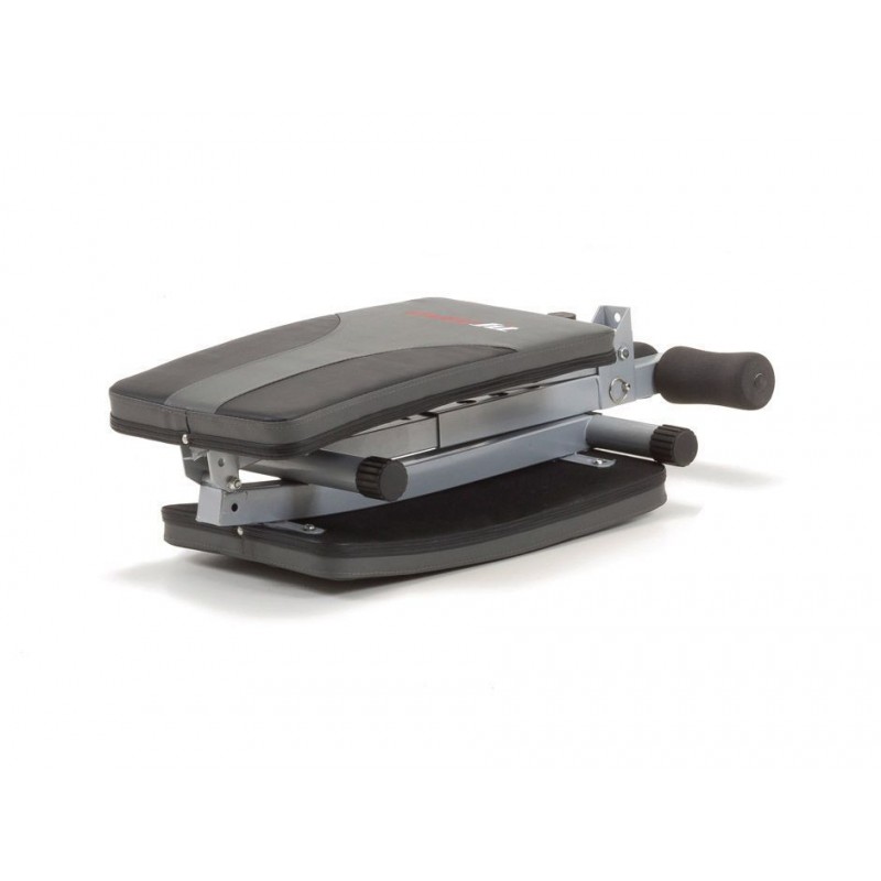 Модель відзначається суперкомпактним механізмом складання, що полегшує зберігання та транспортування, а також міцною рамою з посиленого сталевого профілю. Її зручне сидіння з двоколірним покриттям та високоякісні ролики з піни високої щільності створюють оптимальні умови для тренування преса навіть при максимальному навантаженні.