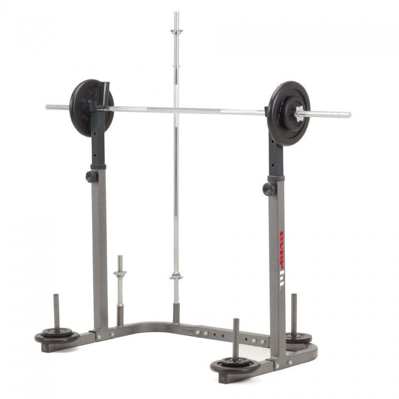 Завдяки регульованій висоті (від 1140 до 1540 мм) та відстані між опорами (від 785 до 985 мм), ця стойка легко адаптується під індивідуальні параметри кожного користувача. Легка вага (15,5 кг) у поєднанні з компактними розмірами робить її зручною для транспортування та зберігання, що особливо важливо для домашніх тренувань.