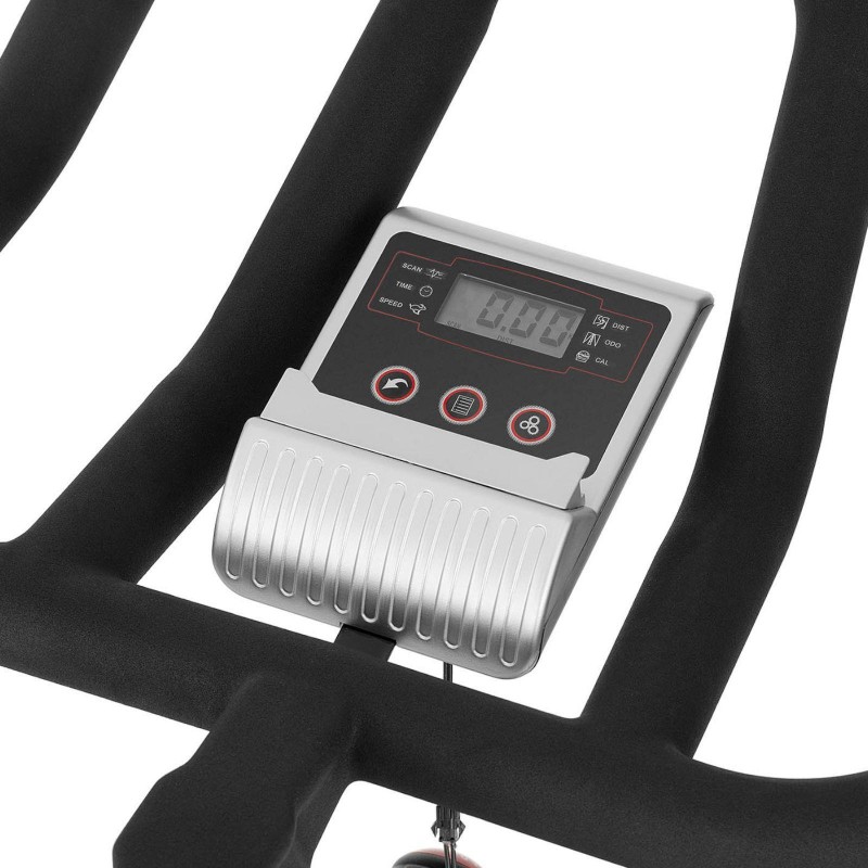 Велотренажер має панель з рідкокристалічним дисплеєм, на якому можна чітко прочитати час тренування, поточну швидкість, пройдену відстань, загальну кількість пройдених кілометрів і спалені калорії. Завдяки функції сканування всі ці параметри можуть автоматично відображатися. Завдяки тримачу для смартфона або планшета ви отримаєте задоволення і час пройде швидше. Еліптичний велосипед має транспортувальні колеса, тому ви можете легко відкласти його після тренування.