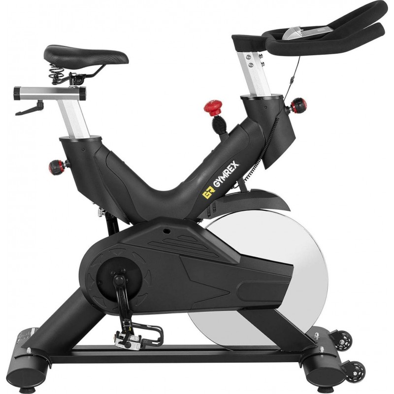 Велотренажер спінінговий Gymrex ідеально підходить для використання вдома, а також у фітнес-клубах, готелях або SPA. Велосипед легко регулюється під ваш зріст. Висота керма (94 см - 104 см) і сидіння (84 см - 105 см) регулюються. Сідло дуже зручне. Збалансовані педалі з ременями для ніг і оптимальна маса маховика 20 кг забезпечують плавну їзду. Велотренажер має панель з РК-дисплеєм, на якому чітко читається час тренування, поточна швидкість, пройдена відстань, загальна кількість пройдених кілометрів і витрачені калорії. Завдяки функції сканування всі ці параметри можуть автоматично відображатися. Спінінг байк оснащений тримачем для телефону та планшета. Крім того, завдяки транспортним колесам велотренажер зручно переміщати. Конструкція виготовлена з міцної сталі з порошковим покриттям, що означає, що велотренажер витримує навантаження до 120 кг.