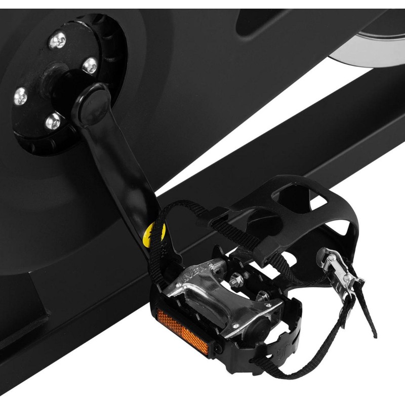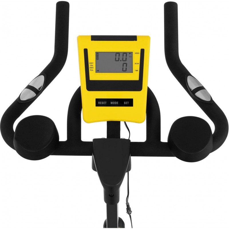 Стаціонарний велотренажер Gymrex ідеально підходить для використання вдома, а також у фітнес-клубах, готелях або SPA. Велотренажер легко регулюється під ваш зріст. Висота керма (110 см - 121 см) і сидіння (84 см - 105 см) регулюються. Сідло дуже зручне. Збалансовані педалі з ременями для ніг і оптимальна маса маховика 18 кг забезпечують плавну їзду. Спінінг-байк має панель з РК-дисплеєм, на якому чітко читається час тренування, поточна швидкість, пройдена відстань, загальна кількість пройдених кілометрів і витрачені калорії. Завдяки функції сканування всі ці параметри можуть автоматично відображатися. Крім того, завдяки транспортним колесам велотренажер зручно переміщати. Конструкція виконана з міцної сталі з порошковим покриттям, що означає, що спінінг байк витримує навантаження до 100 кг.