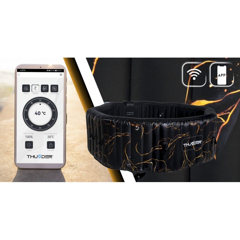 Керуйте надувним джакузі Thunder®️ LAVA зі свого смартфона!Дистанційне керування через мобільний додаток – одна з переваг надувного джакузі Thunder®️ LAVA . Завдяки спеціально розробленому додатку користувачі можуть зручно контролювати та регулювати налаштування . Переваги цього рішення численні. По-перше, це забезпечує комфорт і зручність використання. Вам не потрібно вставати, щоб налаштувати параметри води під свої потреби! Крім того, дистанційне керування дозволяє користувачам готувати джакузі заздалегідь . Ви можете дистанційно ввімкнути підігрів води або гідромасаж перед входом у нього, щоб насолоджуватися готовим і ідеально підготованим джакузі . Крім того, дистанційне керування дозволяє відстежувати стан надувного джакузі , наприклад температуру води та рівень чистоти, що дозволяє користувачам належним чином підтримувати та обслуговувати пристрій. Завдяки цьому рішенню надувний SPA Thunder®️ LAVA стає ще більш функціональним і адаптованим до потреб користувачів.