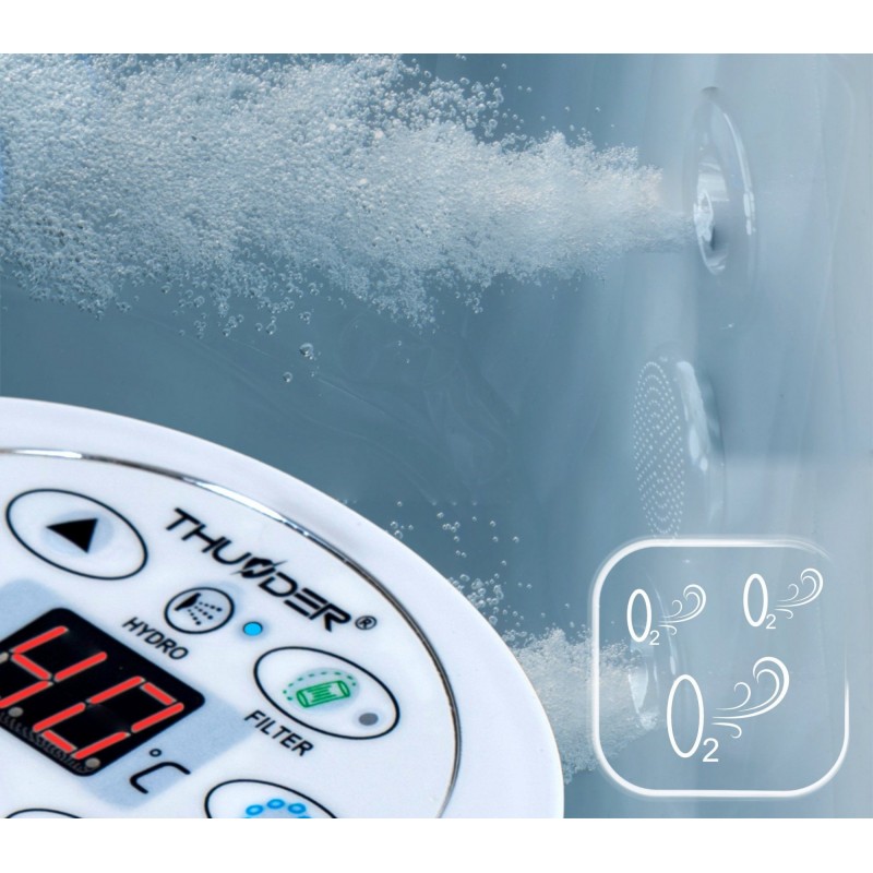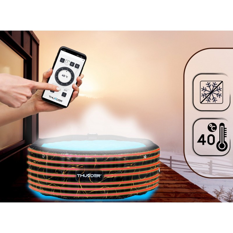 Унікальний відпочинок для Вас і Ваших близьких, який надовго залишиться у Вашій пам'ятіДжакузі-SPA надувне Thunder®️ LAVA - це не тільки насолода для почуттів, а й гарантія блаженного відпочинку. Завдяки інноваційній та ефективній системі швидкого нагріву PTC ви можете насолоджуватися температурою води, яка ідеально відповідає вашим уподобанням. Буквально за кілька годин температура води підніметься до 40 градусів, а система опалення дозволяє нагрівати воду до 2,5 градусів за годину.Переконайтеся самі, що надувний SPA Thunder®️ LAVA – ідеальне рішення для будь-якої погоди! Насолоджуйтеся теплою ванною навіть у найморозніші дні та освіжаючою прохолодою води у спекотні дні. Незалежно від погодних умов, надувні джакузі Thunder®️ забезпечать Вам відпочинок і задоволення в будь-який час.
