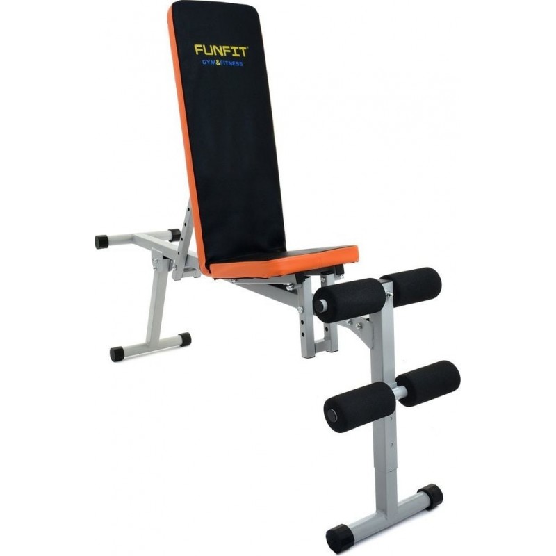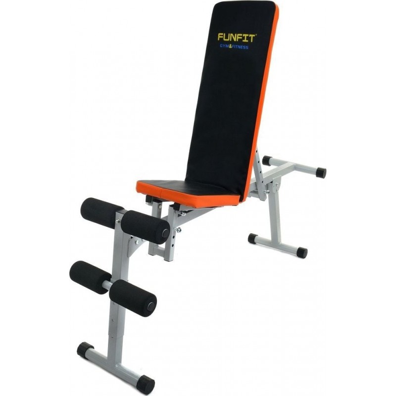 Стійкість під час виконання вправ забезпечує сталева рама. Лава оснащена системою фіксації та регульованими рамами для забезпечення правильного розподілу зусиль. Широкі можливості регулювання дозволяють урізноманітнити тренування.Максимальна вага користувача до 100 кг. Багатопозиційна лава FUNFIT дає можливість виконувати силові вправи з гантелями, штангою і тренування ніг. Після тренування лавку можна без зусиль зберігати навіть у невеликій квартирі завдяки можливості складання.Особливості: