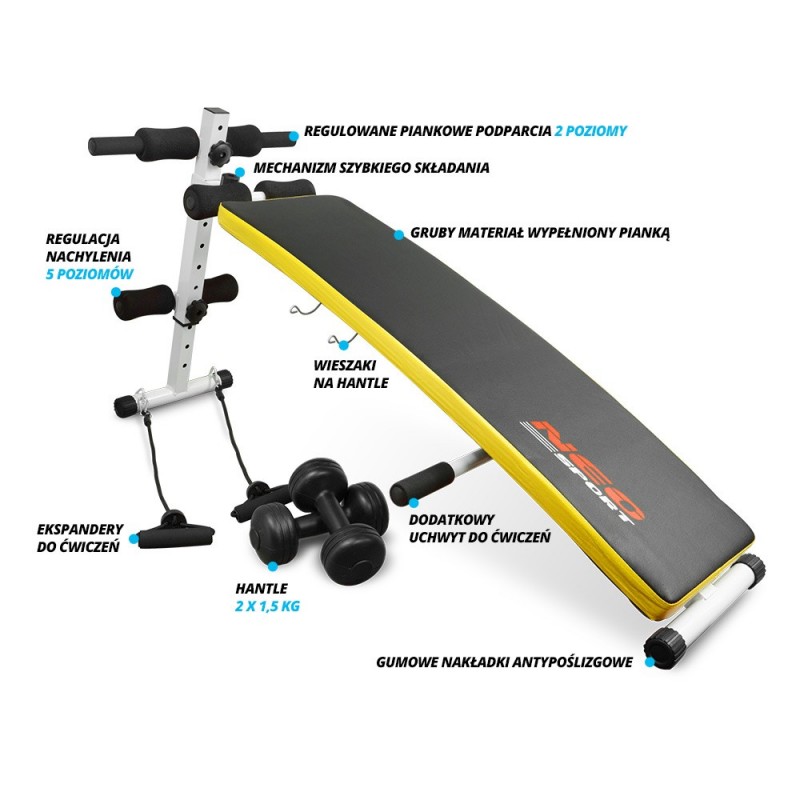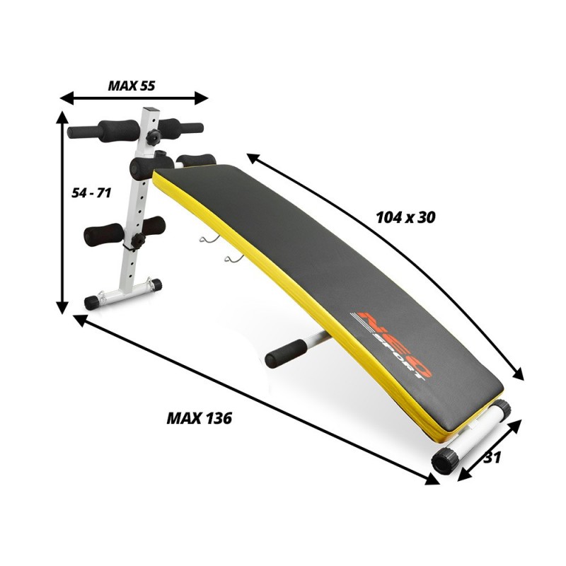 Представляємо вам сучасну профільну лавку Neo-Sport, призначену для домашніх тренажерних залів і не тільки. У нашої лави є регулювання висоти ніжок, яка відповідає за нахил сидіння. Завдяки гумовим наконечникам основ немає ризику подряпати домашню підлогу. Міцна штучна шкіра привабливих кольорів і щільний поролон сидіння забезпечують максимальний комфорт під час вправ як для нижніх, так і для верхніх м'язів. Стабільна металева конструкція гарантує безпеку та максимальну стійкість під час використання лавки. Регулювання висоти ніг дає вам повну свободу настроювання обладнання відповідно до вашого стилю та набору вправ. Завдяки механізму швидкого складання лавка в складеному вигляді займає обмаль місця. Основні особливості: міцний металевий каркас безліч варіантів регулювання м'яке сидіння і спинка 3 ручки з піноматеріалу можливість складання нековзні ніжки мотузки для вправ входять Характеристика: модель Neo-Sport NS-08G довжина макс. 133 см ширина макс. (з ручками) 52 см ширина основи 32 см розміри сидіння 105 x 30 см навантаження макс 100 кг вага 8,40 кг Конструкція лавки: регульовані опори з піноматеріалу (2 рівні) механізм швидкого складання лавки в горизонтальне положення товстий матеріал, наповнений піною регулювання нахилу (5 рівнів) еспандери для вправ (2 шт.) гумові нековзні накладки Можливості регулювання: регулювання нахилу (5 ступенів) регулювання верхньої опори (2 ступені) механізм швидкого складання лавки два еластичні шнури для вправ на руки