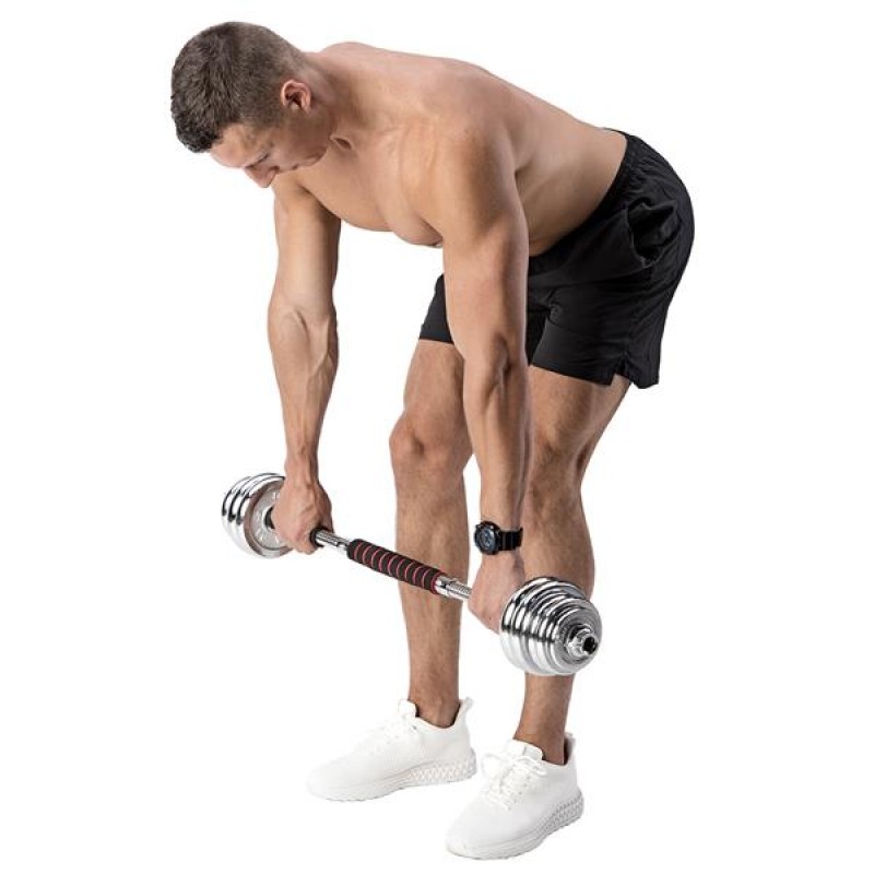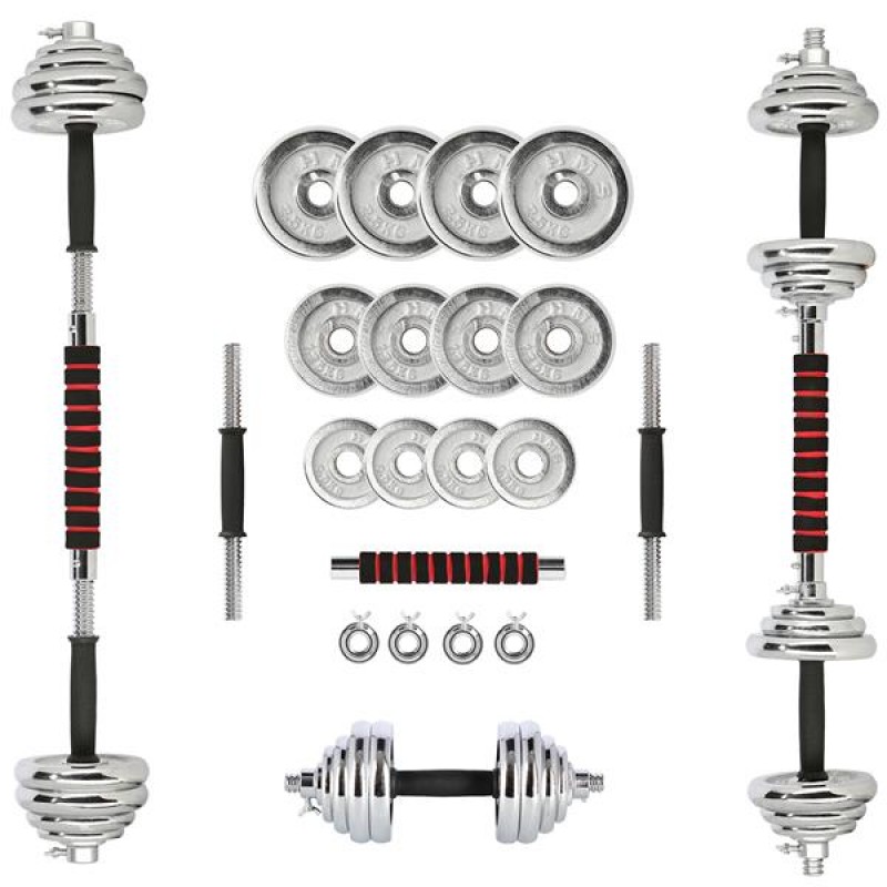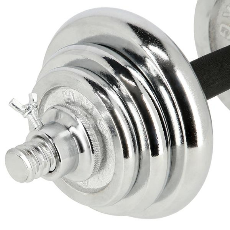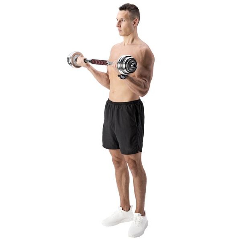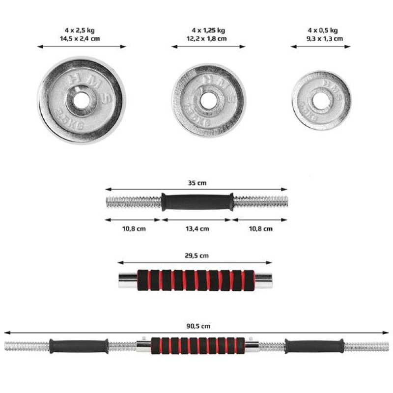 STC21 HMS - це набір хромованих гантелей у валізі, що має також функцію штанги. Повністю обладнаний тренажерний зал повинен мати гантелі та штангу. Однак, в домашньому тренажерному залі питання економії простору є дуже важливим. Тому ідеальним рішенням є набір 2 в 1 HMS STC21. HMS STC21 - це набір з двох гантелей зі змінними обважнювачами. Завдяки спеціальній системі з'єднання його можна перетворити на штангу. Це інноваційне рішення дозволяє користувачеві економити простір і значно розширює діапазон тренувальних можливостей у порівнянні зі звичайним набором гантелей. Процес трансформації гантелей у штангу дуже простий і не займає багато часу. Завдяки набору HMS STC21 можна виконувати вправи, спрямовані на всі групи м'язів і в різноманітних конфігураціях. Бренд HMS фокусується в першу чергу на матеріалах найвищої якості. HMS STC21 виготовлений з хромованої сталі, що характеризується дуже високою міцністю. Це гарантує роки безпроблемного використання. На ручках гантелей є гума, що забезпечує міцний і зручний хват. З'єднувач, що входить до складу штанги, покритий губкою, яка дуже корисна, наприклад, під час виконання присідань. Завдяки їй відсутній дискомфорт, викликаний тиском штанги на спину. Безумовною перевагою STC21 є те, що вона поміщається в кейс, який йде в комплекті. Це дає змогу з легкістю виконувати тренування вдома та в будь-якому іншому місці. Крім того, валіза забезпечує порядок, а також економить простір. Продукт HMS підходить як для просунутих користувачів, так і для початківців. Почніть тренуватися вже сьогодні, STC21 - ідеальний вибір для домашнього спортзалу. Специфікація: Матеріал: хромована сталь Розміри грифа: Довжина: 35 см Діаметр: 24 мм Діаметр рукоятки: 30 мм Розміри з'єднувальної системи: Довжина: 29,5 см Діаметр: 30 мм Діаметр грифа: 39 мм Вага: 2,5 кг - 14,5 х 2,4 см 1,25 кг - 12,2 х 1,8 см 0,5 кг - 9,3 х 1,3 см Вага грифа: 1,1 кг Вага з'єднувальної системи: 0,7 кг Вага затискача: 0,2 кг Загальна вага набору: 21 кг До складу набору входить Коротка штанга х 2 Система з'єднання штанги х 1 Обважнювачі 2,5 кг х 4 Обважнювачі 1,25 кг х 4 Обважнювачі 0,5 кг х 4 Затискачі х 4 Примітки: Не для комерційного використання Гарантія 24 місяці