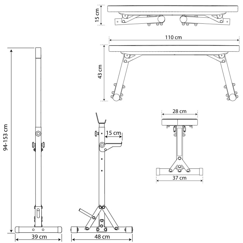 Ідеальне обладнання з будь-якого погляду7 рівнів регулюванняСтійки мають семиступеневе регулювання висоти, замкові отвори розташовані з інтервалом 10 см, що дозволяє точно підлаштувати обладнання під свій зріст. Встановивши підставку на потрібну висоту, ви можете зафіксувати підставку за допомогою притискних гвинтів — це гарантія безпеки під час занять.Повністю складанийПісля тренування просто складіть спорядження за допомогою спеціальної ручки та зберігайте його куди завгодно! Ніжки складаються до самого кінця, тому конструкція займає мало місця і може зберігатися практично де завгодно.