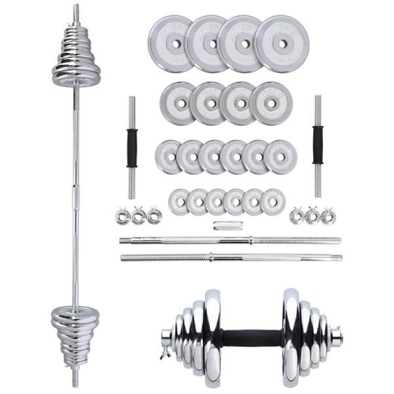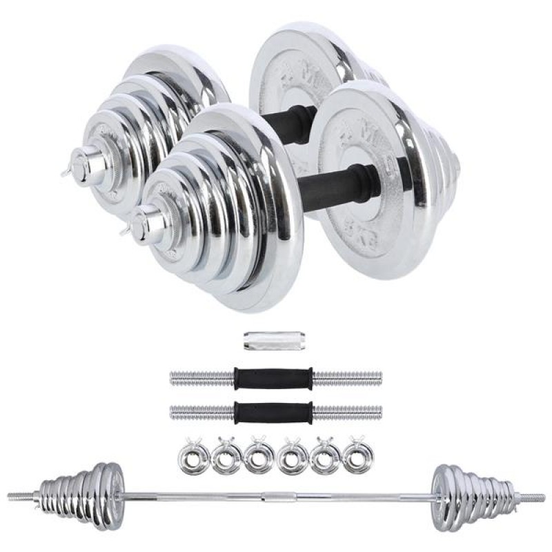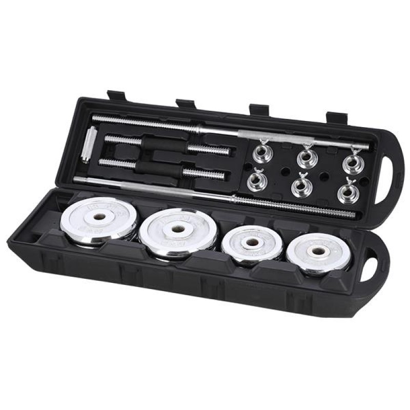 STC50 - це набір з двох гантелей з обважнювачами та скрученої довгої штанги. Гантелі зі змінними обважнювачами - це класика і, водночас, must have для кожного домашнього тренажерного залу. Довга штанга відкриває безліч можливостей для тренувань. Високоякісна хромована сталь гарантує високу міцність і забезпечує тривалий термін служби обладнання. Затискачі та ідеально підібраний діаметр отвору для вантажу полегшують швидку заміну вантажу та забезпечують надійну фіксацію на перекладині. Затискачі мають різьблення, але вони також мають додатковий захист у вигляді затяжного гвинта. Таким чином, обважнювачі не зміщуються під час тренування. Набір складається з двох коротких грифів, довгого скрученого грифа, шести затискачів та 20 обважнювачів. Все це в зручному кейсі. Загальна вага набору становить 50 кг, тому для зручності транспортування валіза оснащена коліщатками. Набір, що складається з гантелей і штанги, дозволяє комплексно тренувати кожну групу м'язів. Штанга розвиває силу та витривалість, а гантелі додають елемент нестабільності, змушуючи стабілізуючі м'язи працювати більш інтенсивно. Займаючись таким чином, ми легко побудуємо сталеві м'язи та ідеальний силует. Виріб підходить як для просунутих користувачів, так і для початківців. Почніть тренування вже сьогодні, STC50 HMS - ідеальний вибір для домашнього тренажерного залу. Специфікація: Матеріал: хромована сталь, Розміри короткої штанги: Довжина: 35 см Діаметр: 25 мм Діаметр рукоятки: 34 мм Розміри довгої штанги Довжина: 75 (одна частина) / 151,3 см Діаметр: 25 мм Діаметр рукоятки: 25 мм Вага: 5 кг - 19,3 х 2,8 см 2,5 кг - 14,5 х 2,7 см 1,25 кг - 11,8 х 1,9 см 0,5 кг - 9,3 х 1,5 см Вага короткої штанги: 1,1 кг Вага довгої штанги 2,5 (одна частина) / 5,4 кг Вага затискача: 0,2 кг Загальна вага набору: 50 кг До складу набору входить Коротка штанга х 2 Довга кручена штанга х 1 Гирі 5 кг - 4 Гирі 2,5 кг х 4 Гирі 1,25 кг х 6 Гирі 0,5 кг х 6 Затискачі х 6 Примітки:Не для комерційного використання24 місяці гарантії