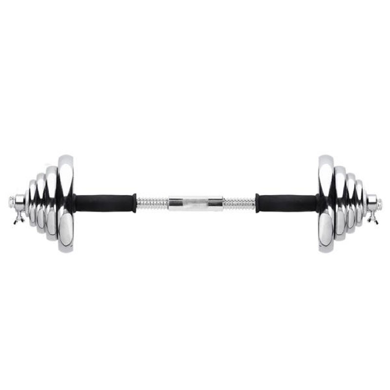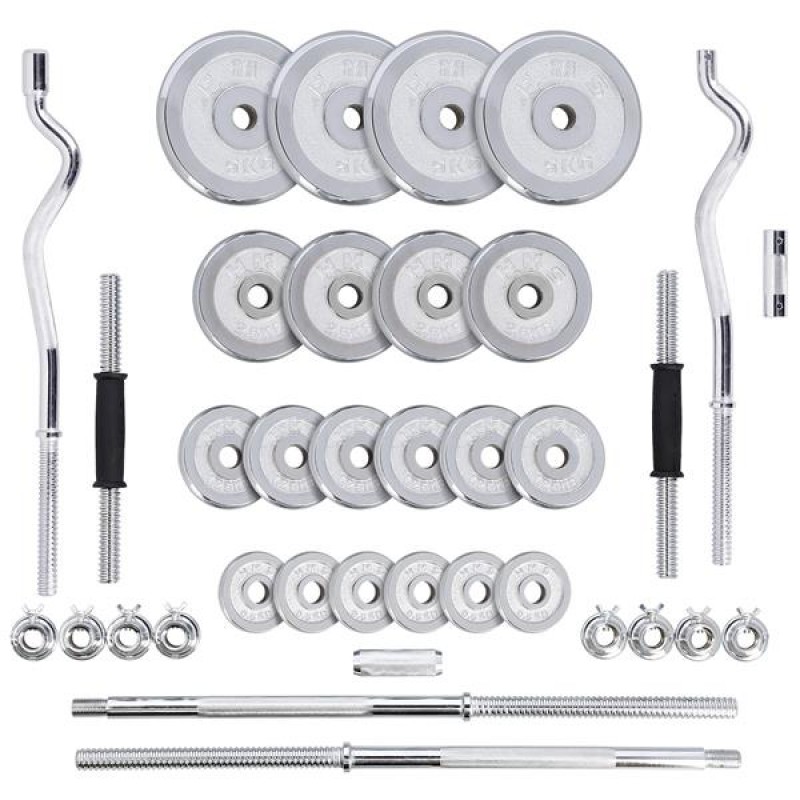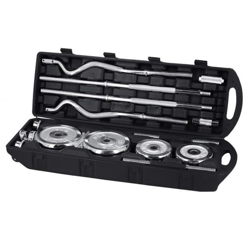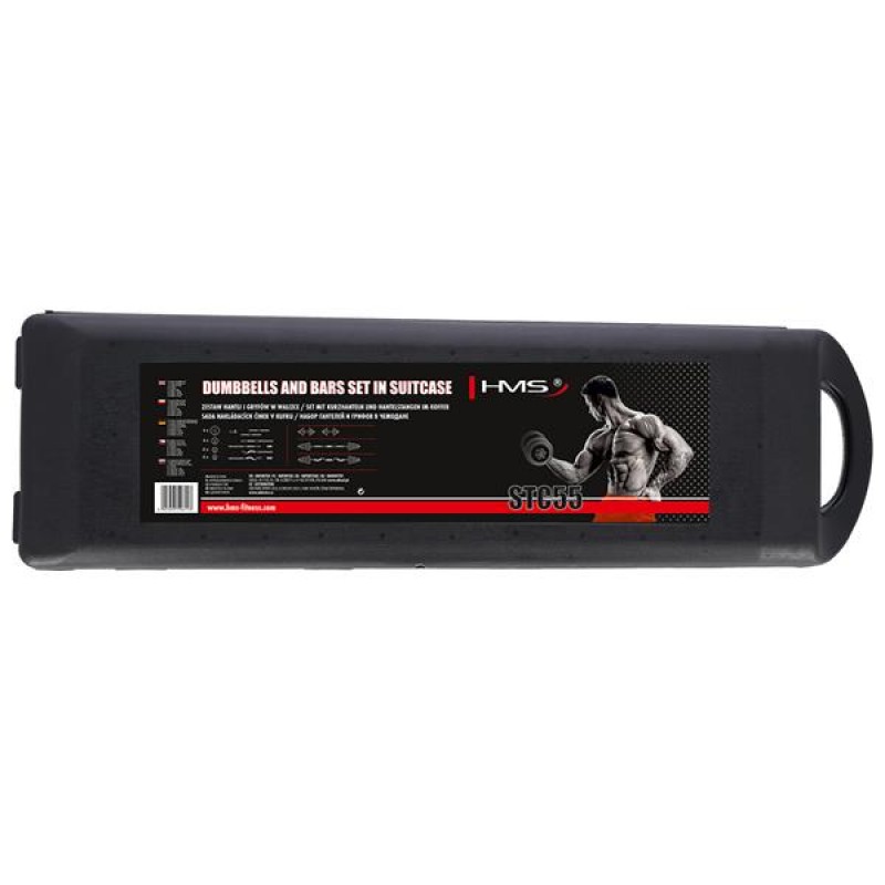 STC55 HMS - це набір з двох гантелей зі змінними вагами, вкручуваним довгим грифом, грифом для скручування і можливістю з'єднати два коротких грифа в один середній. Безліч конфігурацій, безліч варіантів тренувань, і все це в одному корпусі. Гантель зі змінними обтяженнями - це класика і, водночас, must have для кожного домашнього тренажерного залу. У поєднанні зі штангами вона відкриває безліч можливостей для тренувань. Високоякісна хромована сталь гарантує високу міцність і забезпечує тривалий термін служби обладнання. Комірці та ідеально підібраний діаметр отвору для вантажу полегшують швидку заміну вантажу та забезпечують надійну фіксацію на перекладині. Комірці мають різьбу, але вони також мають додатковий захист у вигляді затяжного гвинта. Таким чином, обважнювачі не зміщуються під час тренування. У комплект входять два коротких грифа, довгий гриф з гвинтами, гриф для скручувань і середній гриф, який утворюється шляхом поєднання двох коротких грифів, восьми грифів і 20 обважнювачів загалом. Все це в зручній валізі. Загальна вага набору становить 55 кг, тому для зручності транспортування валіза оснащена коліщатками. Поєднання гантелей і грифів дозволяє комплексно тренувати кожну групу м'язів. Штанга розвиває силу і витривалість, а гантелі додають елемент нестабільності, змушуючи м'язи-стабілізатори працювати більш інтенсивно. Використовуючи скручування та середні штанги, ми можемо задіяти м'язи під різними кутами, щоб отримати більш ефективне тренування. Займаючись таким чином, ми легко побудуємо сталеві м'язи та ідеальний силует. Виріб підходить як для просунутих користувачів, так і для початківців. Почніть тренування вже сьогодні, STC55 HMS - ідеальний вибір для домашнього тренажерного залу. Специфікація: Матеріал: хромована сталь, Розміри короткої штанги: Довжина: 35 см Діаметр: 24 мм Діаметр рукоятки: 30 мм Довжина середньої простої штанги: 72 см Розміри довгого простого грифа: Довжина: 75 (одна частина) / 151,3 см Діаметр: 24 мм Діаметр ручки: 24 мм Розміри грифа для скручування: Довжина: 127 см Діаметр: 24 мм Діаметр грифа: 25 мм Вага: 5 кг - 19,3 х 2,8 см 2,5 кг - 14,5 х 2,4 см 1,25 кг - 11,8 х 1,9 см 0,5 кг - 9,5 х 1,3 см Розміри валізи: 91x 29x 17 см Вага короткої штанги: 1,1 кг Вага довгої простої штанги: 2,5 (одна частина) / 5,4 кг Вага середньої простої штанги: 2,4 кг Вага штанги для скручування: 4,9 кг Вага затискача: 189 г Загальна вага набору: 55 кг У набір входить: Коротка штанга x 2 Довга кручена штанга x 1 Скручена штанга Середня гвинтова штанга Гирі 5 кг - 4 Гирі 2,5 кг x 4 Гирі 1,25 кг x 6 Гирі 0,5 кг x 6 Затискачі x 8 Примітки: Не для комерційного використання Гарантія 24 місяці