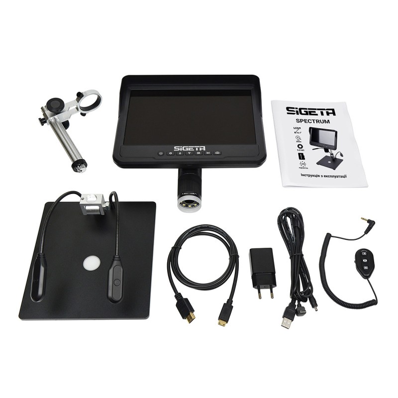 SIGETA Spectrum — потужна новинка та важливе поповнення серед цифрових мікроскопів бренду SIGETA. Цей сучасний багатофункціональний прилад оснащений першокласною оптикою, 5-мегапіксельною камерою та великим LCD-екраном із технологією IPS, що забезпечують чітке та деталізоване зображення, точне відтворення кольорів і широкі кути огляду. Діагональ екрану становить 10.1 дюйма (25.65 см). Потрійна LED-підсвітка дає змогу освітлювати зразки з різних сторін та під різними кутами, а завдяки HDMI-інтерфейсу зображення можна виводити на зовнішній екран для ще більшого комфорту під час роботи.