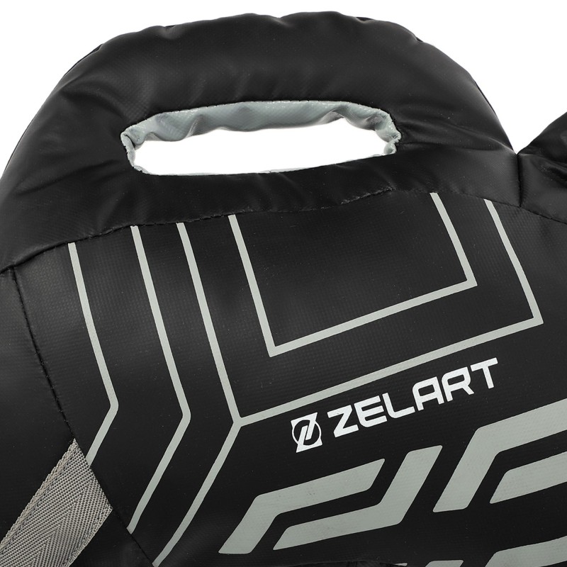 Мішок має оптимальні розміри (62x20x40 см), завдяки чому його зручно використовувати як удома, так і на відкритих тренувальних майданчиках. Виготовлений із високоякісного полівінілхлориду (PVC), який забезпечує довговічність та стійкість до зносу. Як наповнювач використовується спінений поліетилен (EPE) та пісок, що забезпечує м'якість та стабільність навантаження.