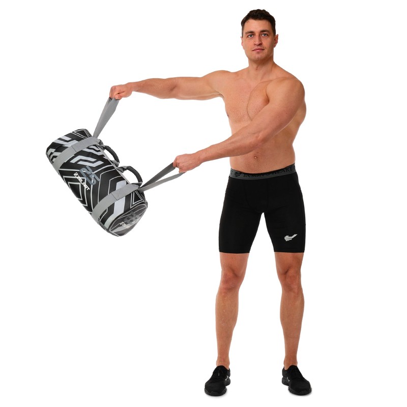 Мішок обладнаний міцними ручками, які дають можливість виконувати різноманітні вправи з різними хватами. Це відкриває широкий спектр тренувань, вкладених у розвиток різних груп м'язів. Power Bag можна використовувати як для статичних вправ, так і для динамічних, таких як метання або перенесення ваги.