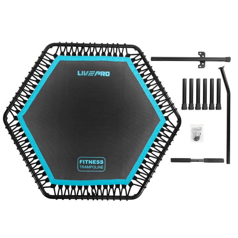 Фітнес батут для джампінгу шестикутний з ручкою LiveUp ø135см, чорний-синій, код: LP8251