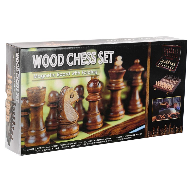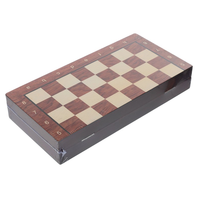 Ігрова дошка виконана з натурального дерева, що надає їй солідності та приємної тактильної текстури. У складеному вигляді вона компактна (34×17×5.5 см), що робить її зручною для зберігання та транспортування. У розкладеному вигляді дошка має розмір 34×34×2.75 см, створюючи просторе ігрове поле для продуманих стратегій та динамічних партій.