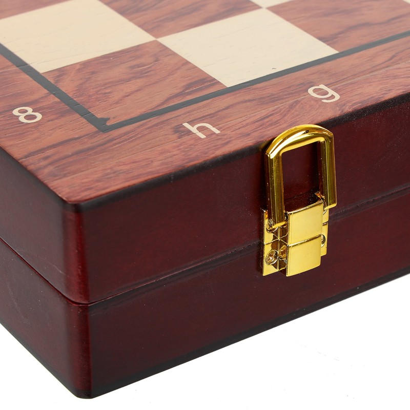 Завдяки вбудованій вкладці для зберігання фігур комплект завжди залишається в порядку. Дошка оснащена міцними металевими замками та петлями, що робить конструкцію надійною та довговічною.