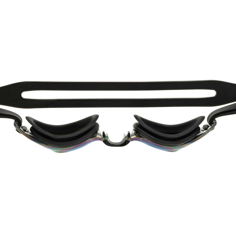 Тренувальні окуляри для плавання з райдужними лінзами Rainbow - це якісне екіпірування, яке можна використовувати для тренувальних запливів у відкритих водоймах і басейні. Лінзи окулярів виготовлені з полікарбонату, також із цього матеріалу виготовлений фіксатор. Регулювання за посадкою відбувається за допомогою бічного фіксатора і силіконового ремінця. Знімна конструкція перенісся забезпечує точну підгонку за посадкою. Щільному приляганню сприяє силіконовий обтюратор. Райдужні лінзи перешкоджають утворенню відблисків і забезпечують кращу видимість. Додатково видимість покращує антифог-покриття, з яким на окулярах не буде утворюватися конденсат. В окулярах присутній захист від ультрафіолету.