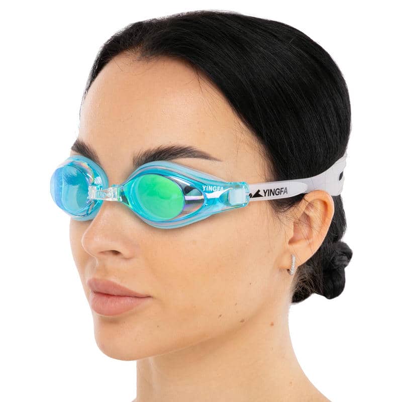 Окуляри для плавання дорослі райдужні лінзи Yingfa синій-білий, код: Y2600AF-V_BLW