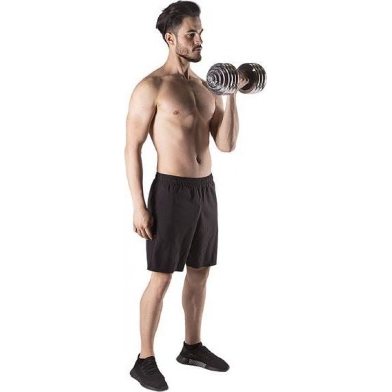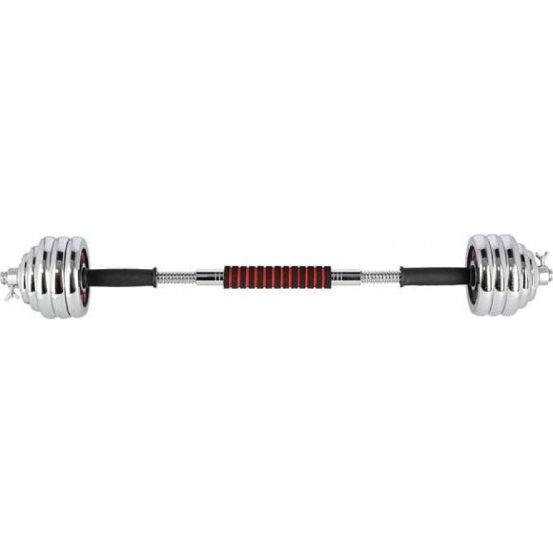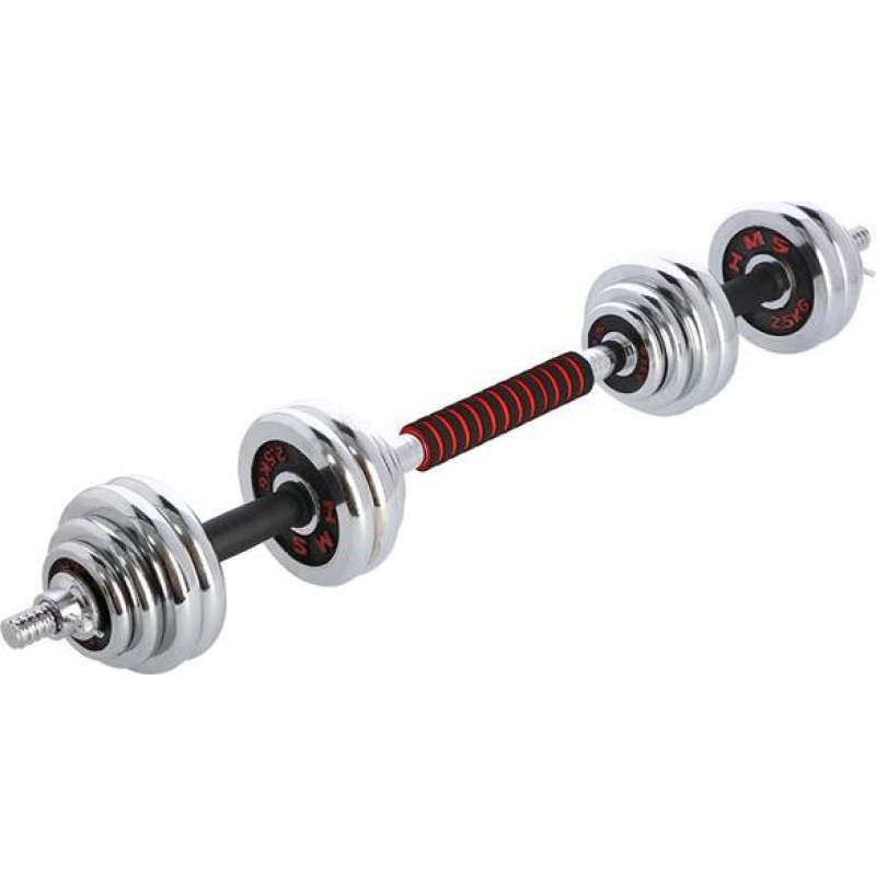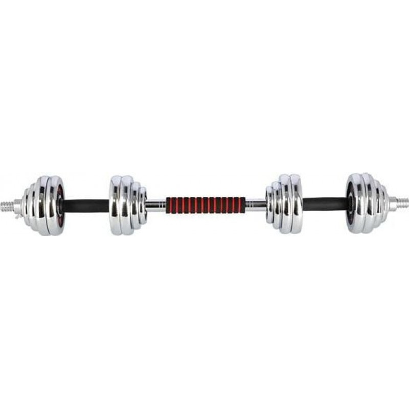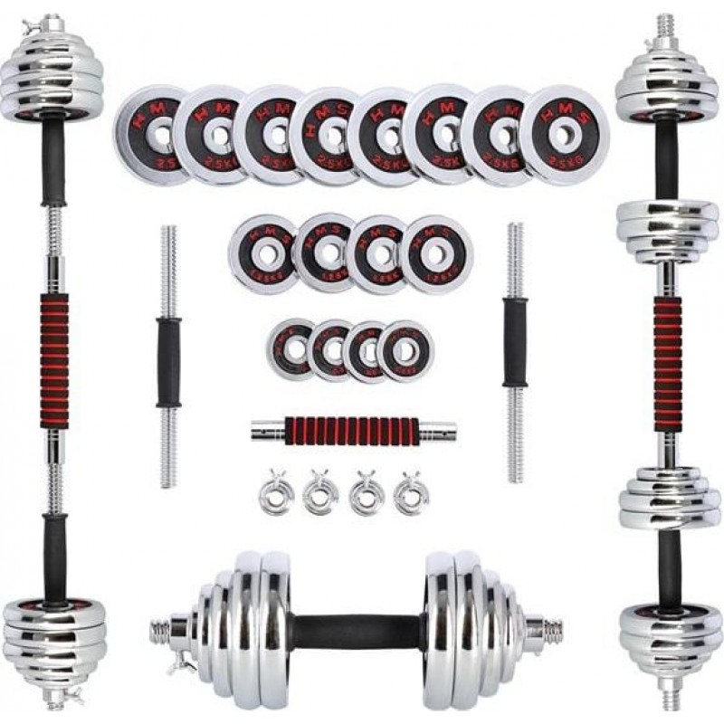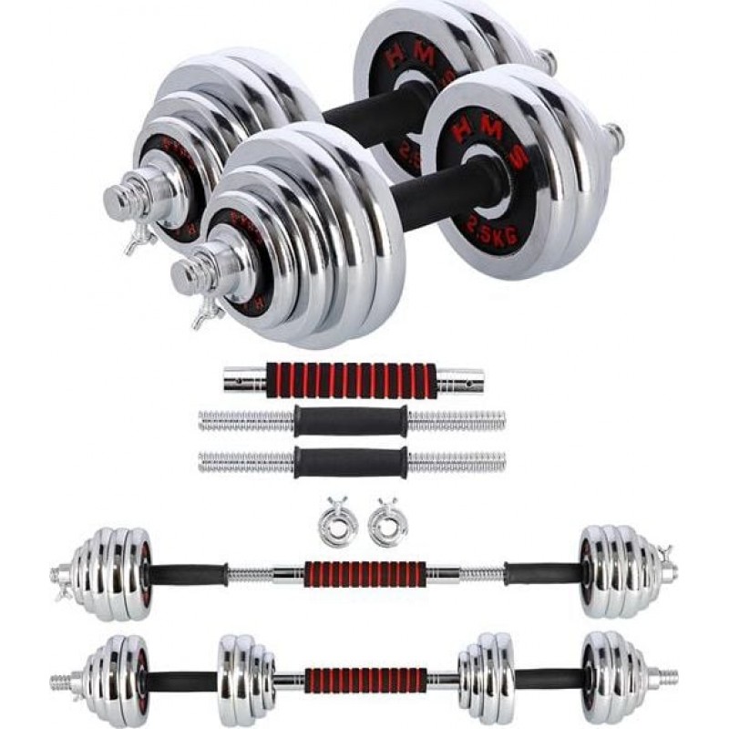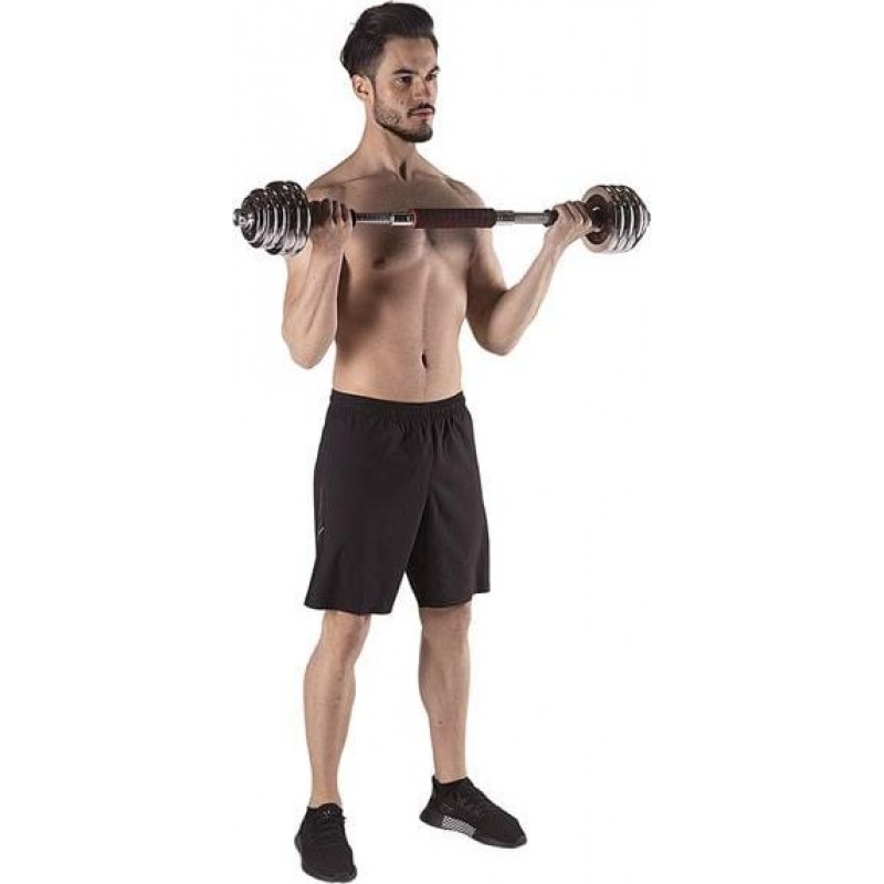 Повністю обладнаний тренажерний зал повинен мати гантелі та штангу в аксесуарах. Однак у домашньому тренажерному залі економія місця дуже важлива. Тому ідеальним рішенням є набір 2 в 1 HMS STC30.STC30 HMS - це набір з двох гантелей зі змінними вагами, з яких, завдяки спеціальному з'єднанню, можна створити штангу. Таке інноваційне рішення дозволяє економити простір і значно розширює спектр можливостей виконання вправ по відношенню до звичайного набору гантелей. Сам процес перетворення гантелей в штангу дуже простий і не займає багато часу. З набором STC30 HMS у вашому розпорядженні можна виконувати вправи для всіх груп м'язів у різних конфігураціях.Специфікація: