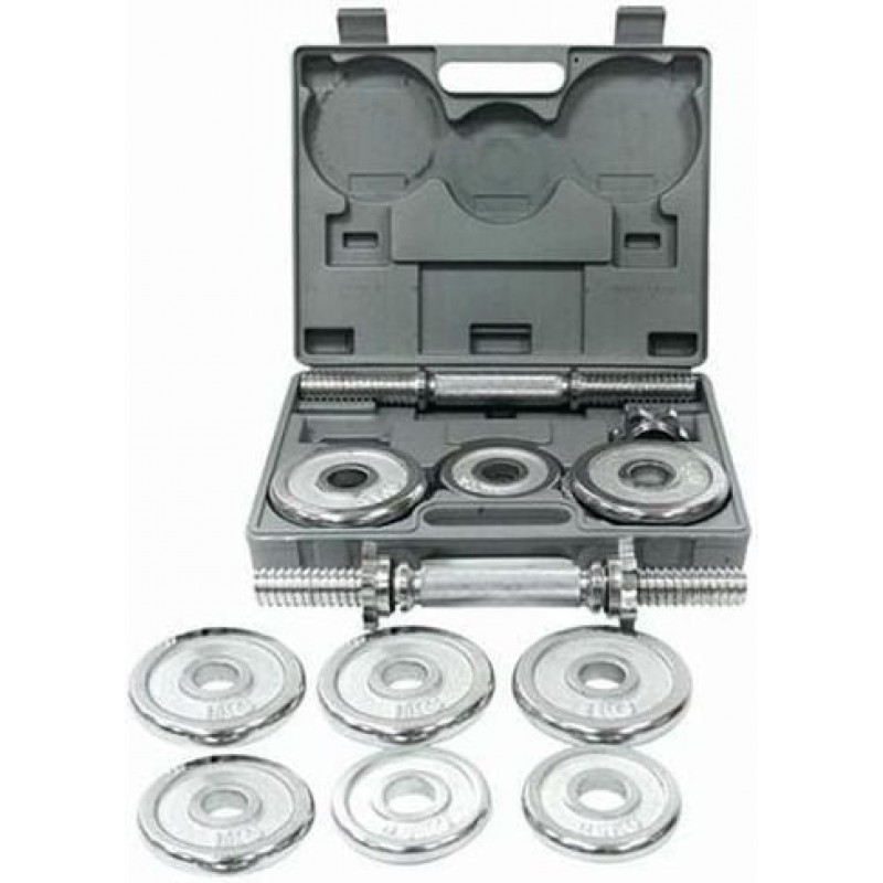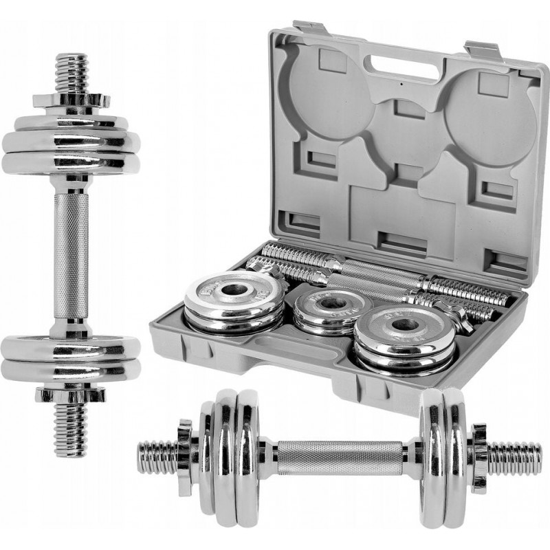 Матеріал: хромована сталь. Вага навантаження: 15 кг. Різьбові кінці. Ребриста ручка. В комплекті: 2 прямі бруски масою 2,5 кг. Розмір горловини: 35 х 3 см (довжина х діаметр). 8 хромованих пластин вагою 1 кг. 4 хромовані пластини масою 0,5 кг. Модель STC-15 являє собою набір обважнювачів загальною вагою 15 кг. Характерною особливістю є дуже зручний транспортний кейс, який дозволяє носити гантелі куди завгодно. Ваги покриті захисним хромом для забезпечення найкращої якості та довговічності виробу. Поєднання сталі та хрому означає, що набір однаково добре виглядатиме як у день покупки, так і після багатьох років навчання. Посилені штанги з гвинтовими затискачами гарантують безпеку під час тренувань. Ручки покриті рифленими ручками, які надійно лягають у руку.Безпечне та комфортне навчанняКрім того, кожна гиря оснащена різьбовими кінцями, які полегшують установку все більших вантажів. Система блокування навантаження однією гайкою надзвичайно проста та безпечна.HMS — це бренд із багаторічним досвідом у широкому розумінні світу фітнесу. Безперервно з 2000 року компанія надає нові, інноваційні продукти, які гарантують найкращу якість. Тут немає місця напівзаходам. Кожне обладнання проходить лабораторні випробування для перевірки безпеки та комфорту використання, а суворі стандарти виробництва гарантують безвідмовну роботу обладнання та довговічність протягом багатьох років інтенсивних тренувань.Широкий асортимент продукції підтверджує величезну прихильність HMS на ринку. Пропозиція фітнес-товарів включає: велотренажери, бігові доріжки, еліптичні тренажери та гребці. Люди, які активно займаються всіма видами гімнастичних, аеробних і популярних вправ Кроссфіт, знайдуть в асортименті: степери, килимки, м'ячі, еспандери, кільця, шківи, ручки, скакалки і навіть тренувальні стрічки та гімнастичні ролики.Окрім внутрішнього ринку, компанія дуже добре працює на міжнародному ринку. Протягом багатьох років HMS асоціюється з високою якістю та довговічністю своєї продукції. Лауреат багатьох галузевих нагород і постійний учасник найбільших спортивних виставок Європи, таких як: ISPO, FIBO, SportLife.