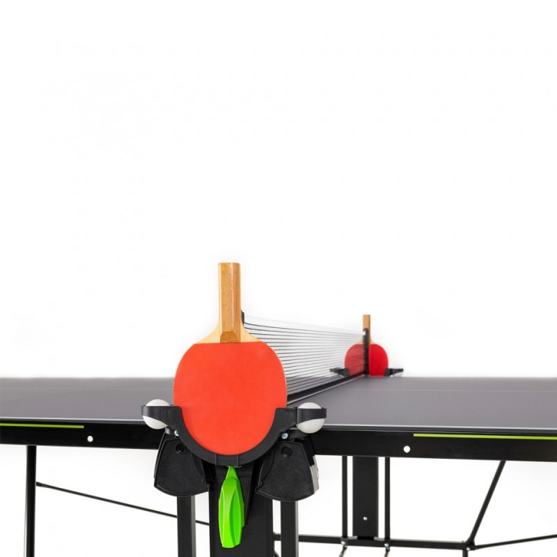 • Кишені для ракеток і м'ячів : функціональні кишені для ракеток і м'ячів дозволяють зручно зберігати ігрові аксесуари (ракетки і м'ячі, зображені на малюнку, НЕ входять до столу).