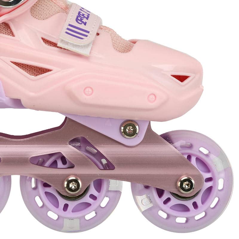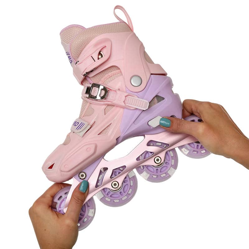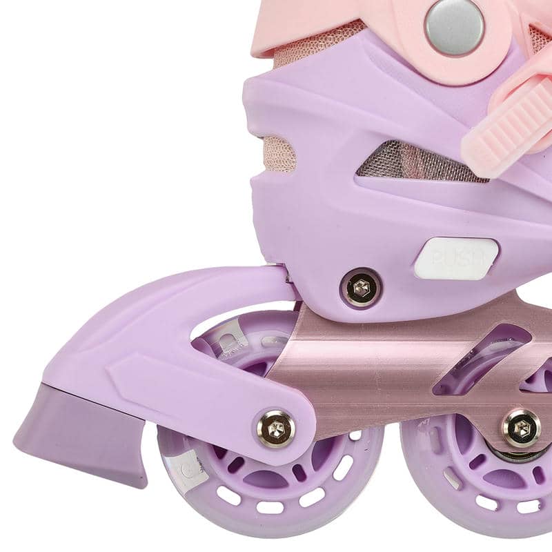 У моделі передбачені колеса, що світяться, які не тільки роблять катання ефектнішим, а й підвищують видимість у вечірній час. Конструкція роликів поєднує міцність та легкість. Черевик виконаний із міцного пластику, який надійно захищає стопу від ударів, а алюмінієва рама забезпечує високу стійкість та довговічність. Колеса з поліуретану мають відмінну амортизацію і зчеплення з дорогою, що робить катання максимально плавним і безпечним.