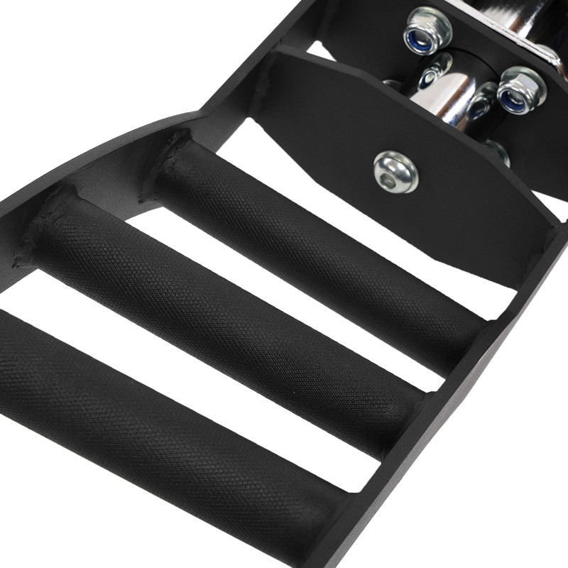Швейцарський гриф мультихват Multi Grip Swiss Bar - це найкращий спеціалізований гриф для тренування верхньої частини тіла. Аркова конструкція руків'я сприяє рівномірному розподілу ваги та дає змогу розширити діапазон рухів. Поперечні ручки приварені на різній відстані одна від одної, що дає змогу тренуватися трьома різними хватами для опрацювання різних груп м'язів. У широкому, середньому та вузькому хваті долоні розташовані лицем до лиця, що знімає навантаження на суглоби та полегшує тренування спортсменам, які мають проблеми із зап'ястями або плечима. Руків'я покрите порошковою фарбою, що захищає снаряд від корозії. Розмір руків'я 135х19 см.