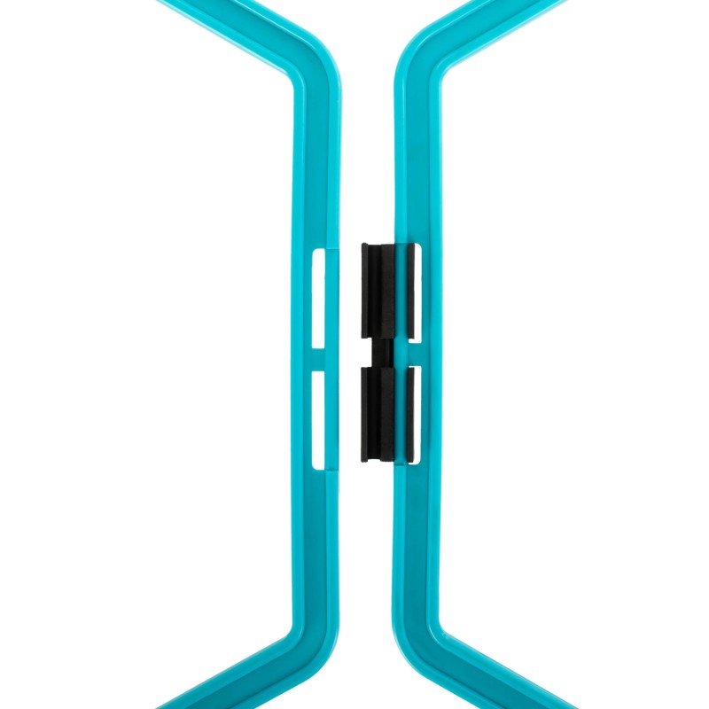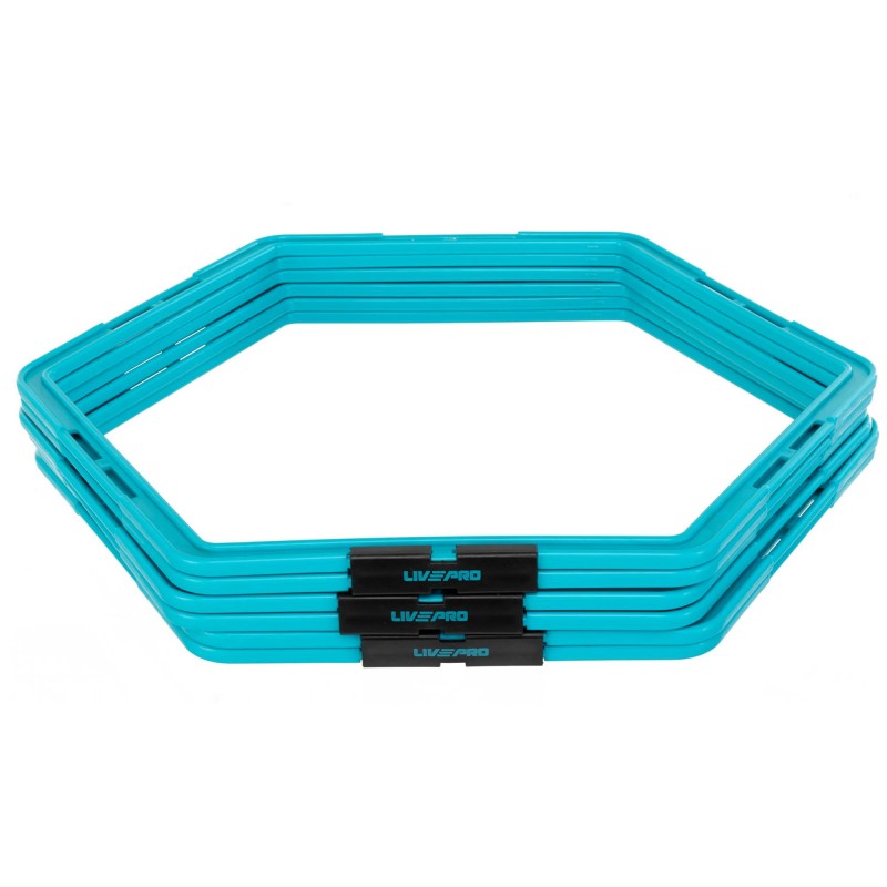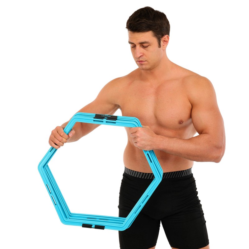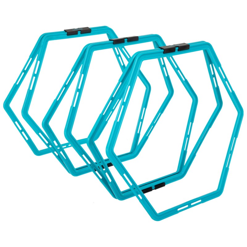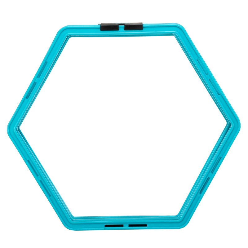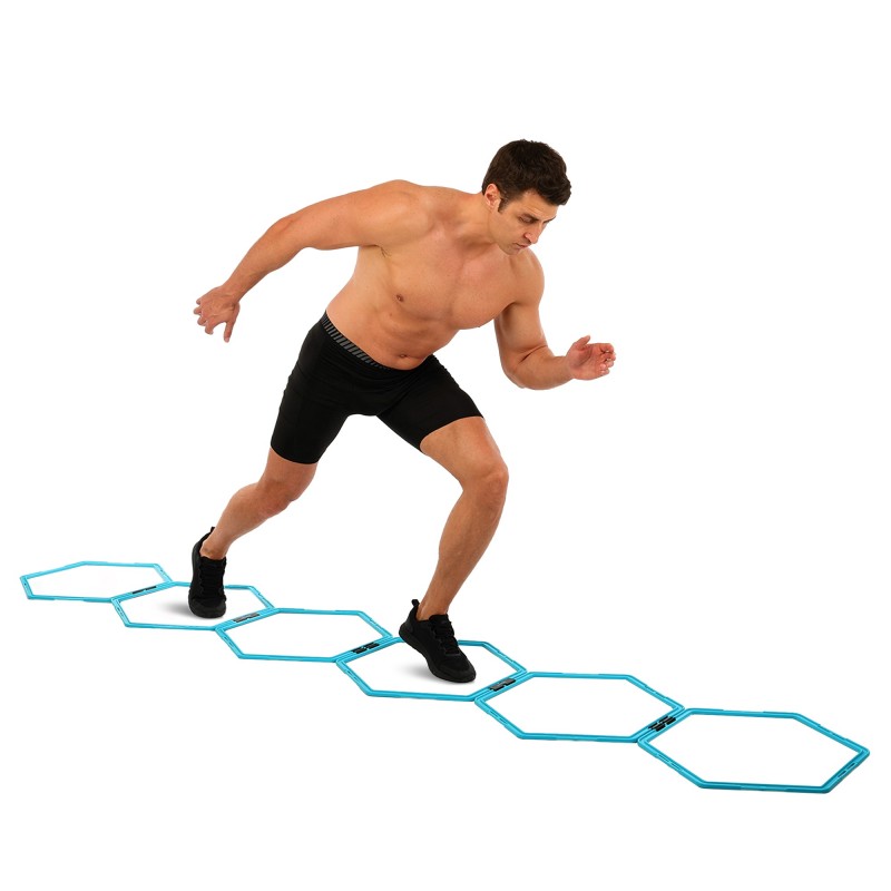 Тренувальна підлогова сітка Agility - координаційні сходи для тренування швидкості, спритності та балансу. Тренажер виконаний у вигляді 6 ідентичних шестикутників з високоміцного пластику. Соти дуже легкі, за допомогою універсальних кріплень їх можна вільно комбінувати. Матеріал стійкий до впливу зовнішнього середовища, відмінно справляється з навантаженнями, не деформується. Довжина сторони соти - 28 см, товщина рами - 11 мм. У складеному вигляді конструкція не займає багато місця, вага одного комплекту (6 штук) становить лише 1,3 кг. Це дає змогу з легкістю переносити тренажер, використовувати його для тренувань у залі та на вулиці.
