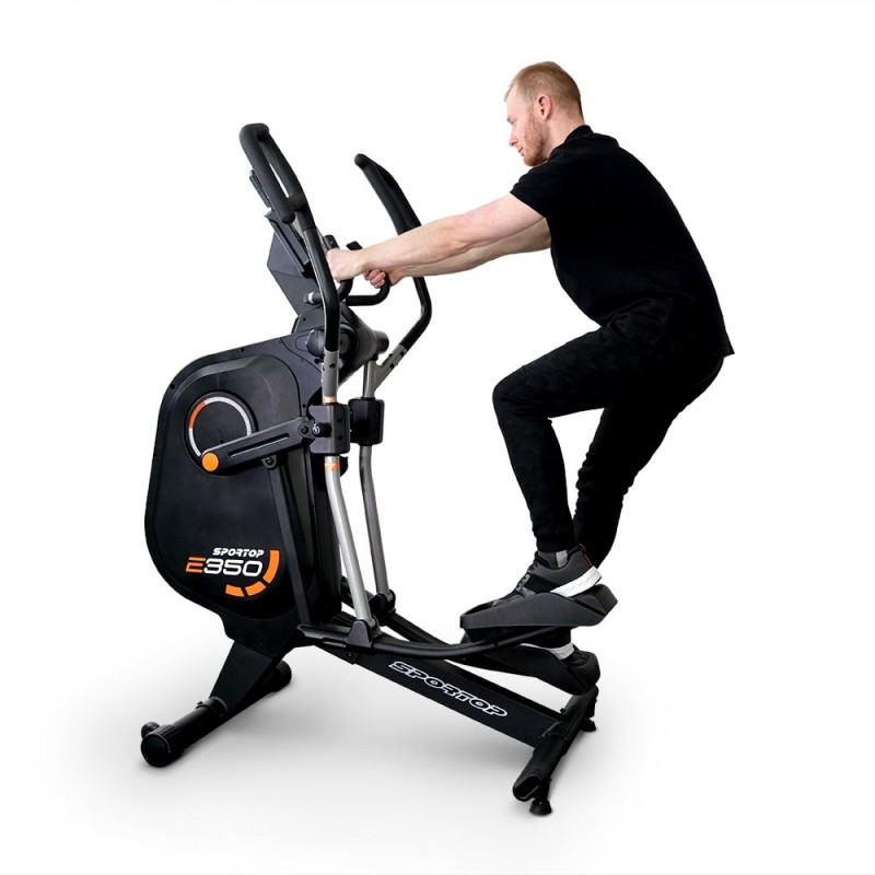 Комбінований еліптичний орбітрек Sportop E350 TFT - тренажер, призначений для дому та фітнес-клубів з безперервної тренувальним навантаженням до 4-х годин на день. Подальша тренування може починатися не раніше ніж після годинного "відпочинку" тренажера.