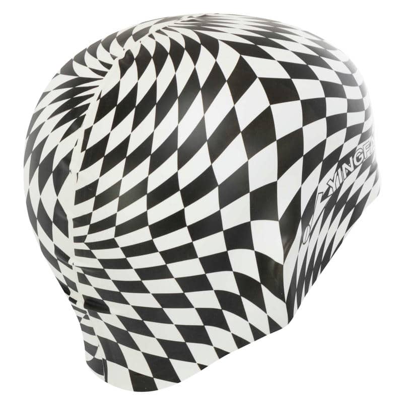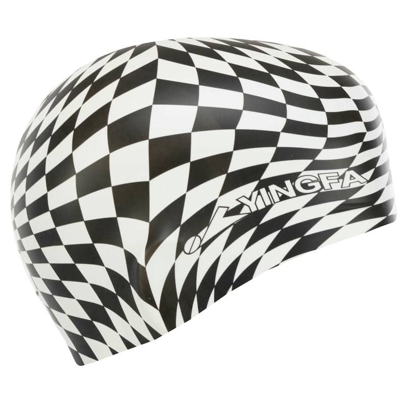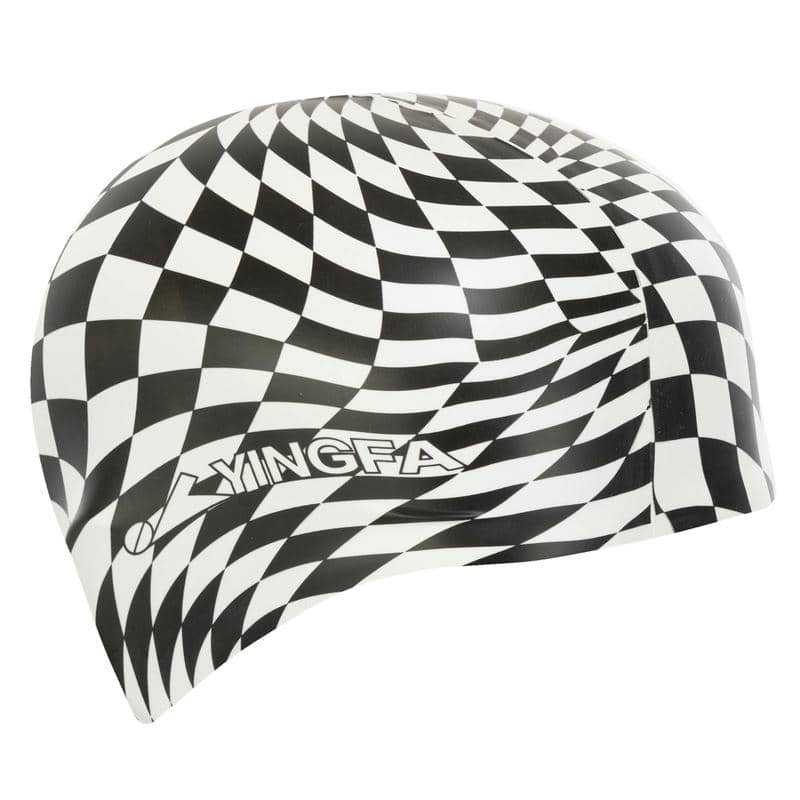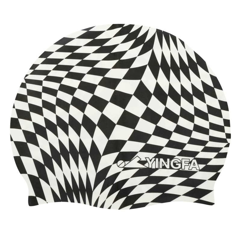 Шапочка для плавання силіконова для дорослих Yingfa чорний-білий, код: C0091_BKW