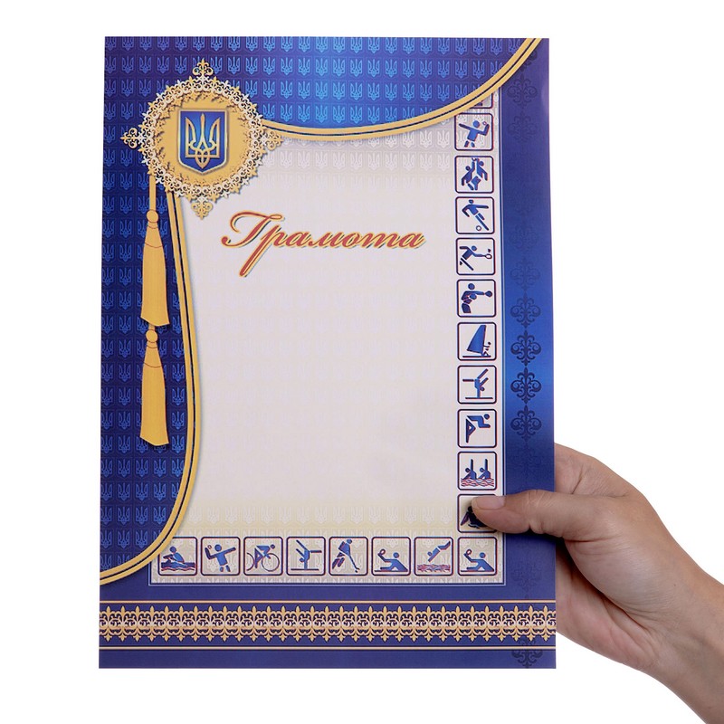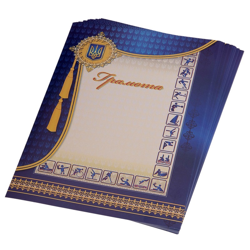 Грамота спортивна A4 з гербом та прапором України PlayGame 210х295 мм, код: C-1801-6