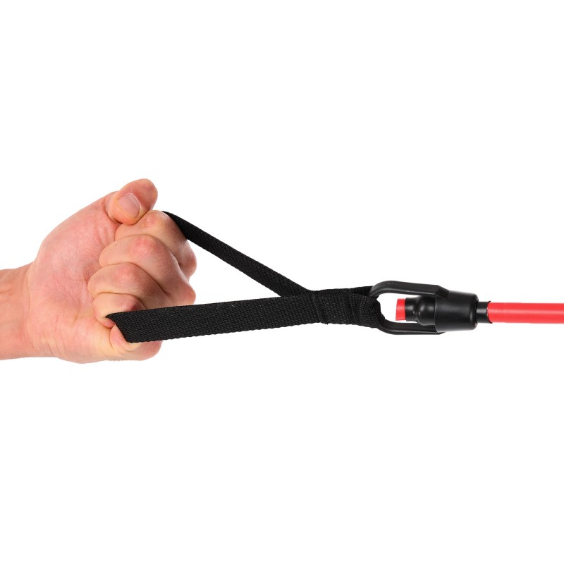 - Принцип роботи полягає в тому, що джгут натягується під час руху вперед, збільшуючи навантаження, а потім допомагає контролювати повернення у вихідне положення.