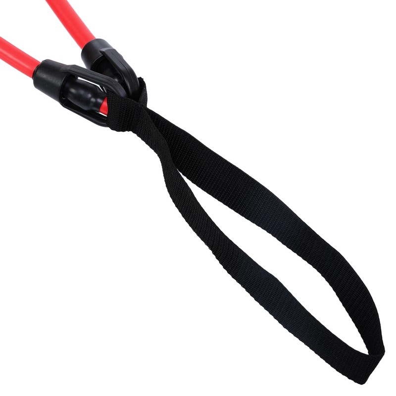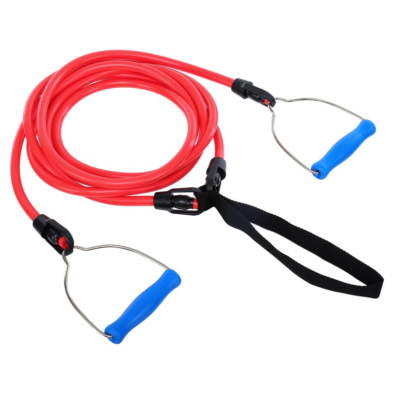 У комплект входять два еластичні джгути довжиною 2,5 м з діаметром 1,2 см, дві зручні ручки шириною 11 см і діаметром 2,5 см, а також дві регульовані лямки для ніг. Для зручності зберігання та транспортування тренажер комплектується сітчастою сумкою, що дозволяє легко брати його із собою у басейн або на тренування. Джгути виконані із міцного силікону, який витримує тривалі навантаження та зберігає свою еластичність. Ручки виготовлені з міцного пластику та металу, забезпечуючи надійний хват, а лямки з нейлону щільно фіксуються, не зісковзуючи під час вправ.