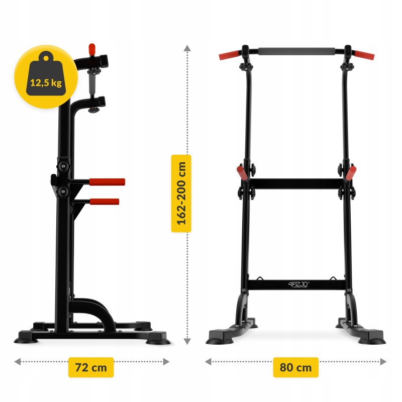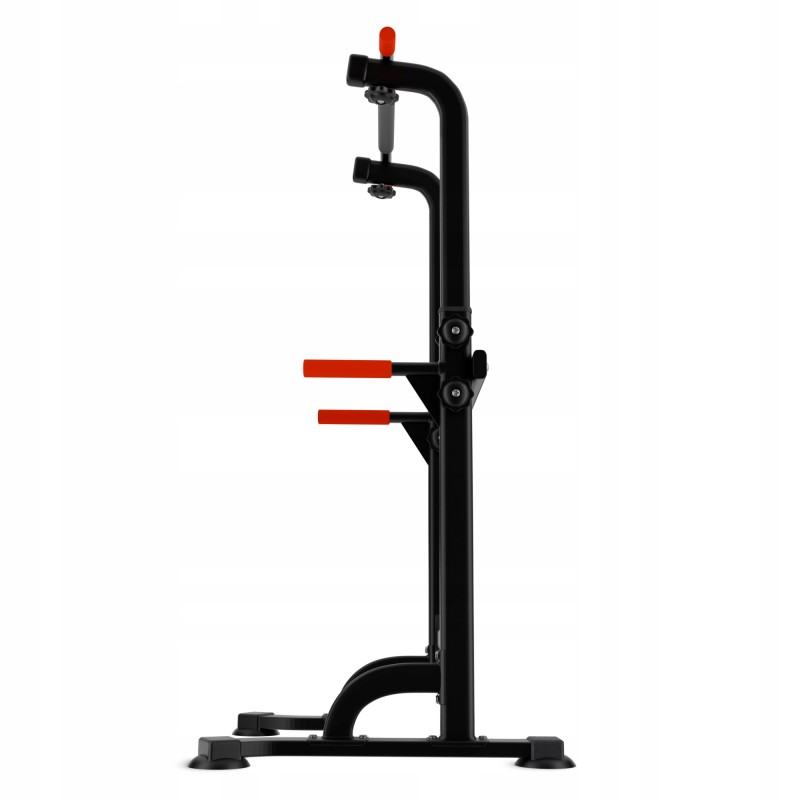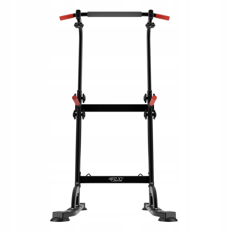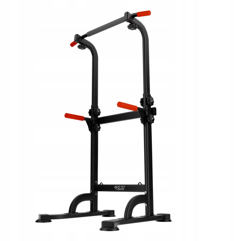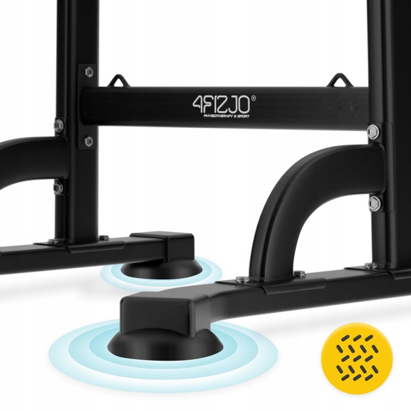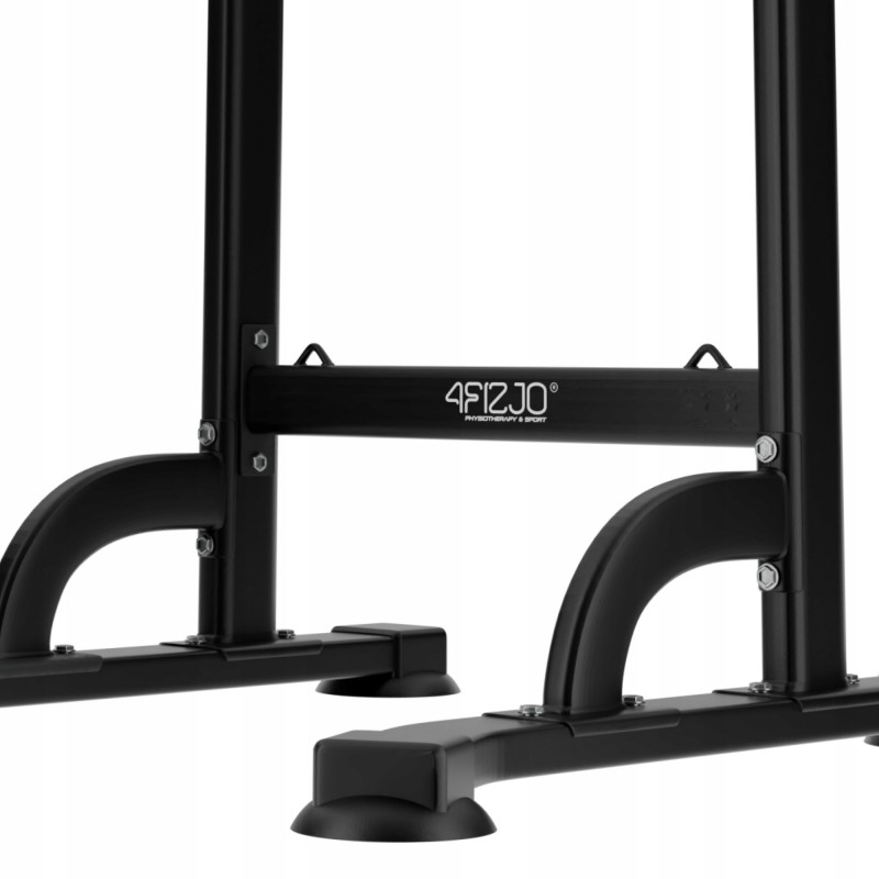 Рама багатофункціональної стійки для тренувань від 4Fizjo виконана з високоякісного сталевого профілю, тому максимальне навантаження на неї становить до 150 кг. Тренажер дозволяє регулювати висоту перекладини у 12 положеннях, завдяки цьому його можна адаптувати не тільки під зріст користувача та позиціонування рук, але й під власні тренувальні уподобання. Не мало часу виробник приділив питанню безпеки користування обладнанням. Розширена основа сталевої конструкції оснащена ніжками, які працюють за принципом присосок. Завдяки цим особливостям тренажер залишається стабільним навіть при великих навантаженнях. Окрім основного функціоналу, а саме широкої та зручної перекладини для підтягувань, стійка обладнана брусами для віджимань. З верстатом можна використовувати різноманітні обтяження, еспандери та петлі, що дозволять корегувати ваші тренування для отримання бажаного результату.