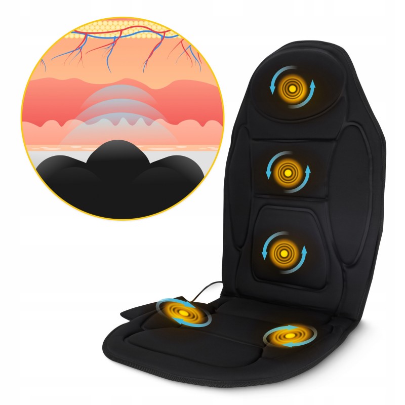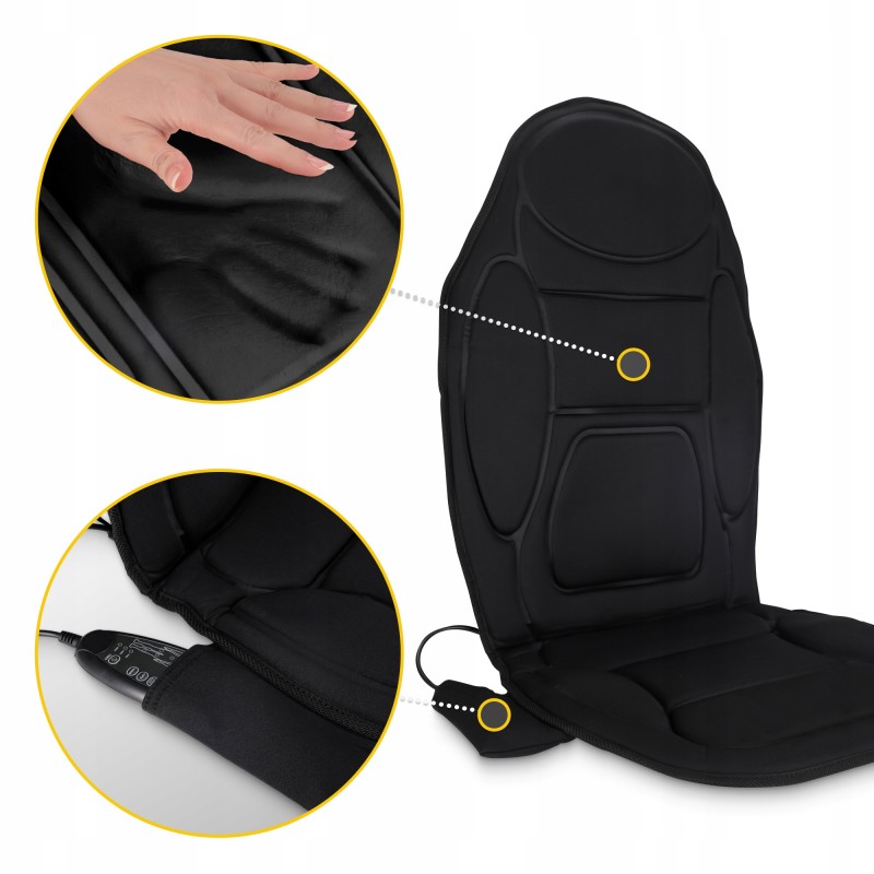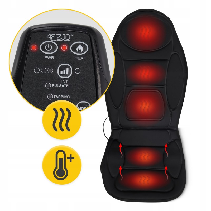 Масажна накидка від 4Fizjo надзвичайно проста у використанні та сумісна з більшістю крісел. Пристрій живиться від мережі, а також у комплекті присутній адаптер, що дозволяє використовувати його від прикурювача в авто. П'ять масажних головок забезпечують розслаблення напружених частин тіла. Користувачеві на вибір доступно 5 режимів масажу: розминання, постукування, пульсація, роликовий та автоматичний.