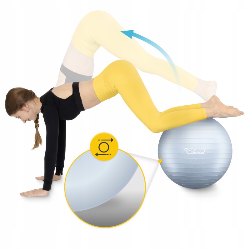 М'яч для фітнесу від польського бренду 4Fizjo - це універсальний інструмент, створений для тих, хто дбає про своє тіло та прагне ефективних результатів у тренуваннях, реабілітації чи корекції постави. Виготовлений із міцного матеріалу, цей м’яч ідеально підходить для розвитку м’язової сили, поліпшення балансу та зняття напруги зі спини. Виріб має систему захисту Anti-Burst, яка спрацьовує при механічних пошкодженнях та захищає від різкого викиду повітря. Фітбол стане незамінним для відновлення після травм, тренувань м’язів корпуса, йоги для вагітних або навіть як ергономічне крісло для робочого столу. Серед великого розмаїття кольорів ви обов'язково знайдете свій улюблений, а зручна помпа в комплекті дозволяє швидко накачати м’яч до потрібної жорсткості.