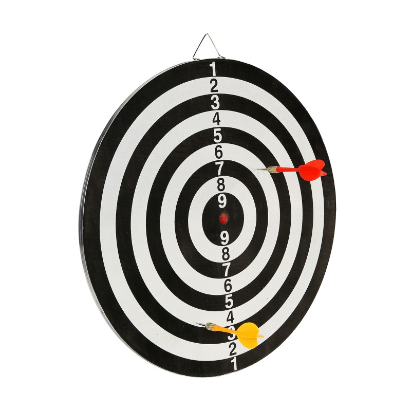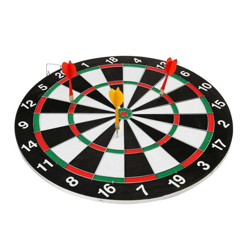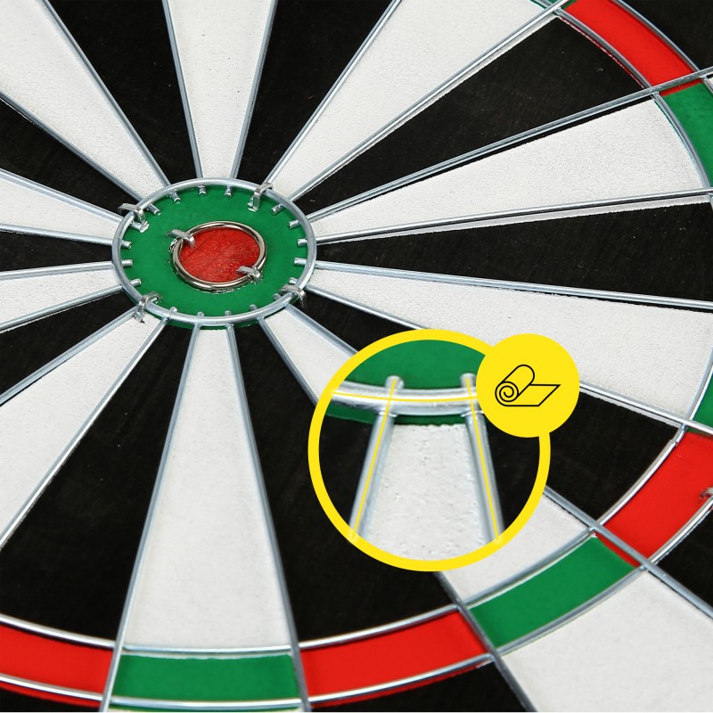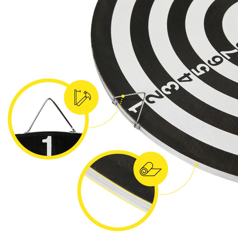 Класичний дартс від Cornix являє собою двосторонню мішень діаметром 40.5 см, виготовлену зі щільного пресованого картону, який стійкий до деформації та забезпечує чітке фіксування дротиків під час гри. Поверхня розділена на яскраві сектори з металевою окантовкою - це дозволяє чітко відстежувати результати кидків. Два комплекти дротиків (усього 6 штук) мають зручні, текстуровані наконечники з металу для кращого хвату. Їх також можна підточувати, щоб вони завжди відмінно встромлялися в мішень. Хвостовик дротика виготовлений з гнучкого ПВХ пластику, що особливо важливо для початківців і дітей, адже зламати чи пошкодити їх вкрай складно. Монтаж гри займає лічені хвилини: достатньо закріпити мішень на стіні або розмістити на спеціальній стійці (в комплект не входить).